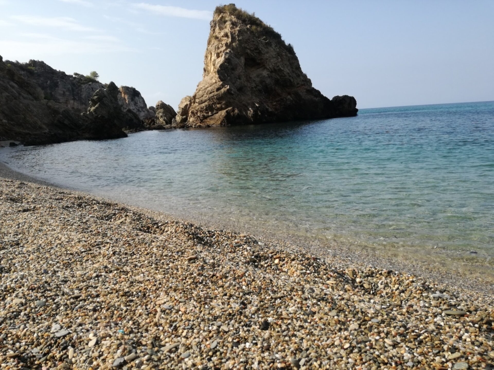 Positive experience: Playa de piedra laminada y gravilla de unos 500 metros de longitud ubicada en una hondonada protegida por dos puntas que la protegen del viento. Acceso restringido a vehículos por pista terriza con fuerte pendiente que parte del parking habilitado junto a la carretera N-340a donde se puede tomar un microbus (viaje ida y vuelta: 2,25 €). Acceso peatonal por sendero. Carece de servicios básicos como duchas, pasarelas o socorrista. Chiringuito, restaurante, alquiler de hamacas/sombrillas (6 €), tablas y kajaks. Contenedores de basura en parking. Aguas cristalinas, fondos de piedra y arena con mucha vida. Ideal para hacer snorkel en las zonas más próximas a los dos extremos de la cala.