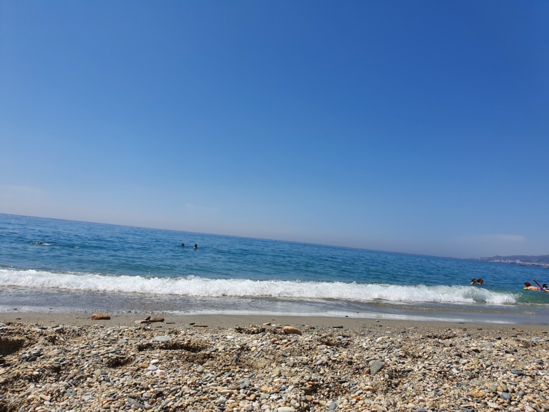 Positive experience: The beach is spectacular and very nice, but you need beach shoes because there are many small stones. To get to the beach, the public transportation units do not provide the appropriate service, as there is no air conditioning or ventilation. They charge €2.50.