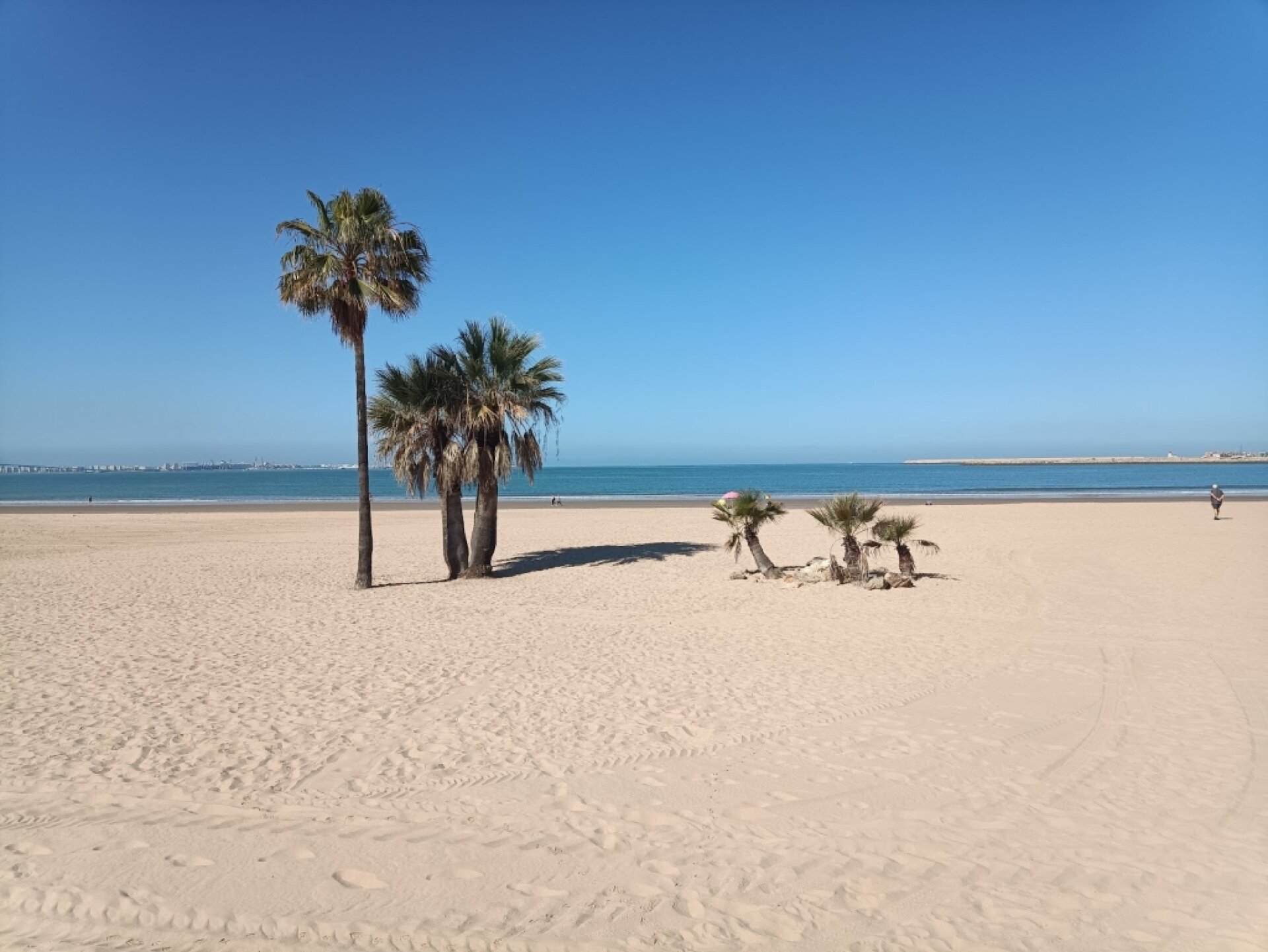 Positive experience: a nice place to walk, swim, run, and stroll. There are plenty of places to buy things, beach bars, all of this in the summer season. I went at the end of the season and it seems like everything is for me, hee hee. The shops and beach bars are all closed, so I enjoyed the walk along the beach and its views of Cádiz and its bridge, all full of palm trees and apartment buildings on the other side of the beach next to its magnificent promenade.