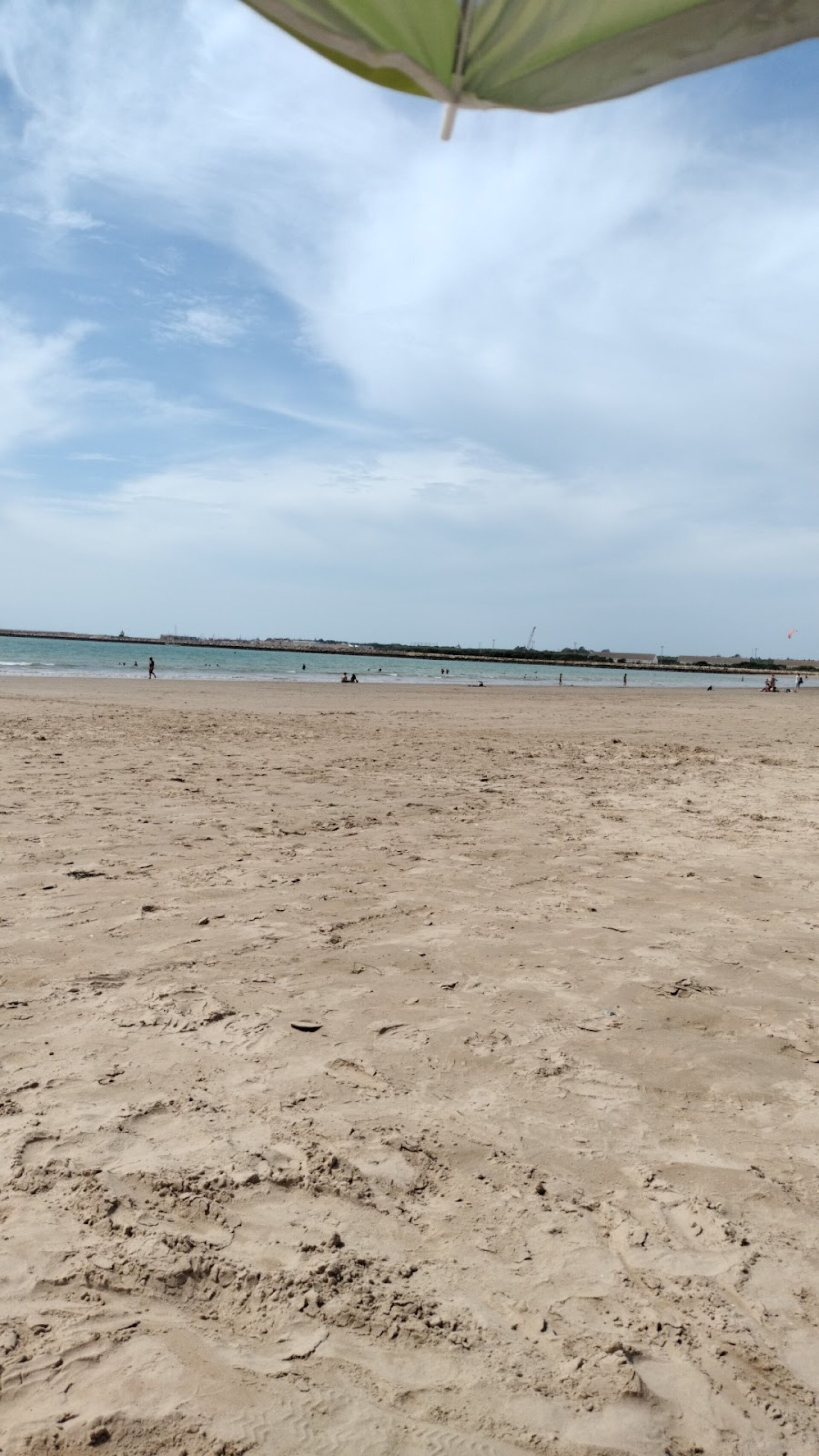 Negative experience: Large beach with fine sand, there are no showers or foot washes, the sand is a bit dirty with cigarette butts, plastics, and many broken shells that you step on, the water was not clean either, it had foam that stayed on the shore, that’s what you get for being surrounded by ports, boats, and factories.