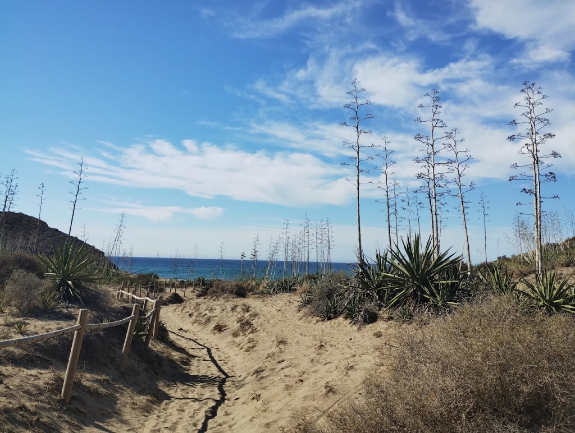Fantastic experience: Wild beaches in Cabo de Gata. Difficult access as you have to walk 2 kilometers along a mountain goat path, but it's worth it. In addition to those going to the beach, many hikers also travel the route between the beaches and the volcanoes of Cabo de Gata. The sea has side currents when there is strong easterly wind with waves, so be careful and watch the children. Great beach!