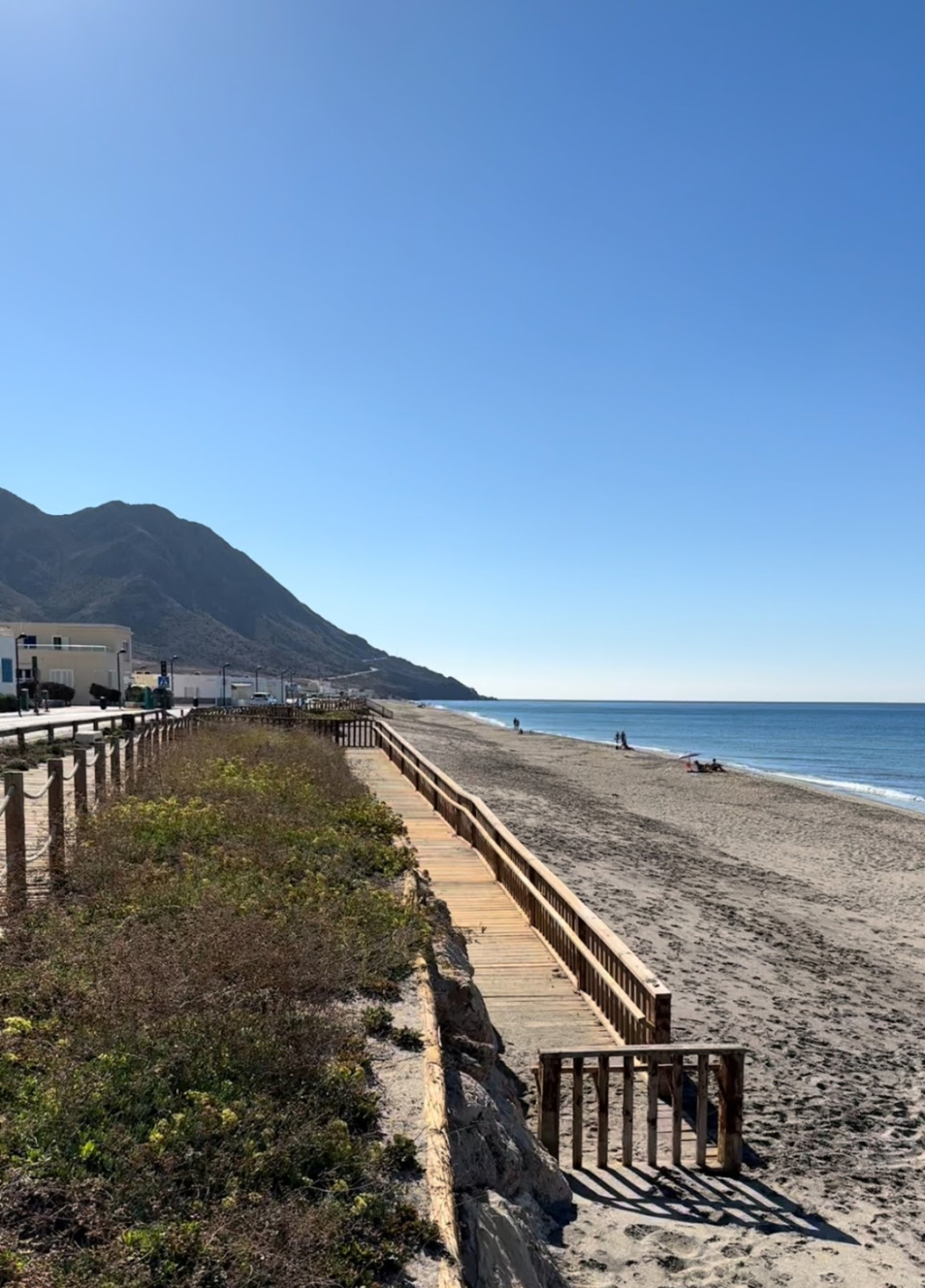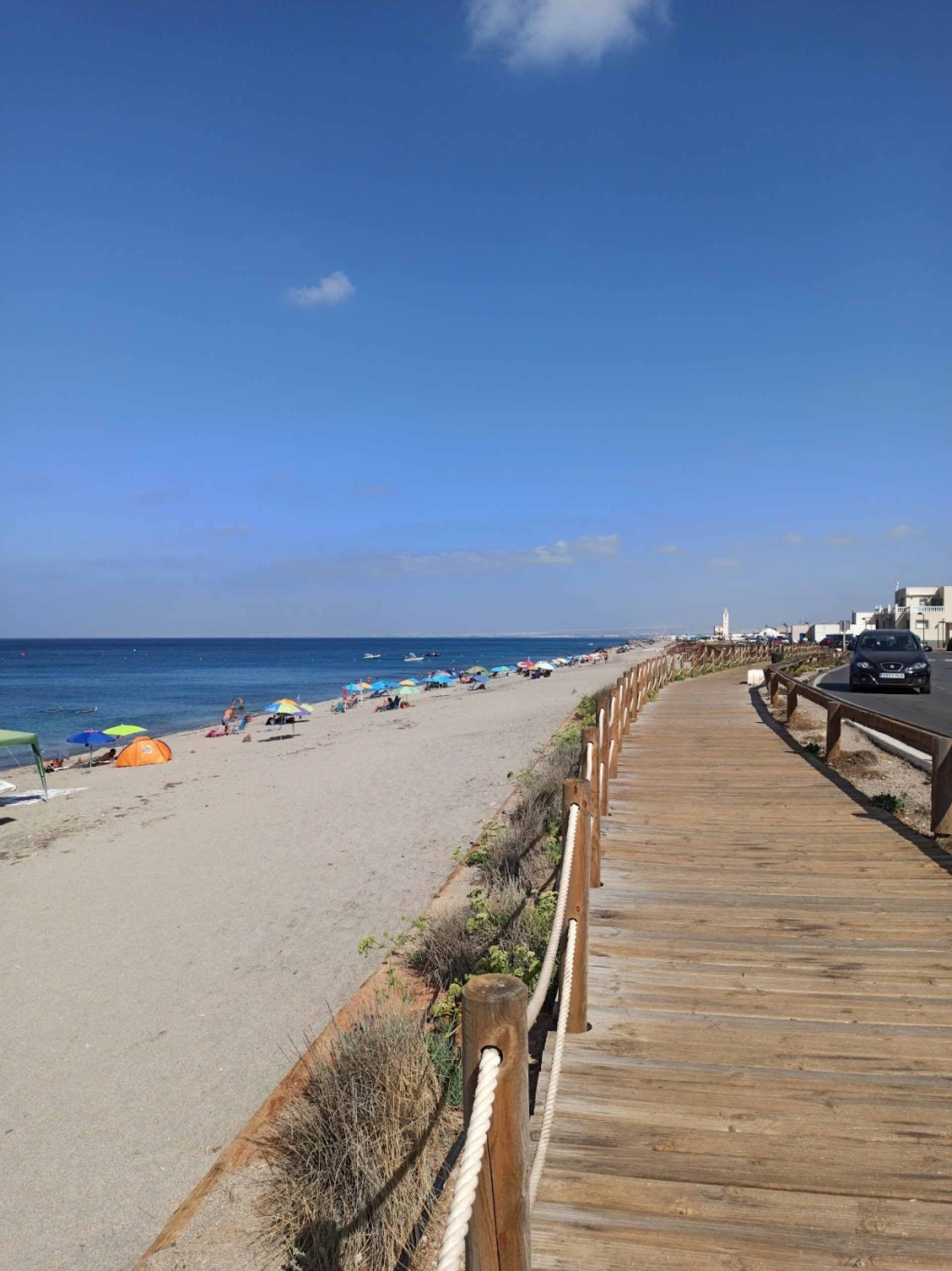 Positive experience: Playa muy bonita con sus aguas limpias. Muy amplia y con chiringuitos cruzando la calle, lo cual es una gran ventaja en el verano. Muy cerca el cabo de gata.