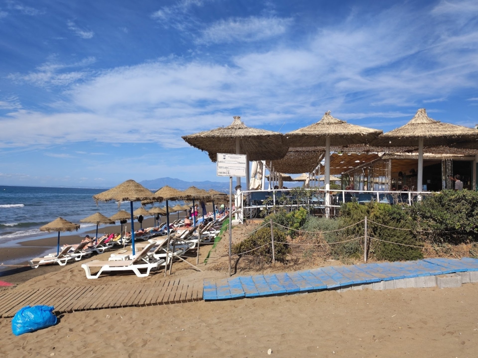Positive experience: Sun, sound of the sea and good cheringitos. Sunbeds a bit expensive at €8 per day.