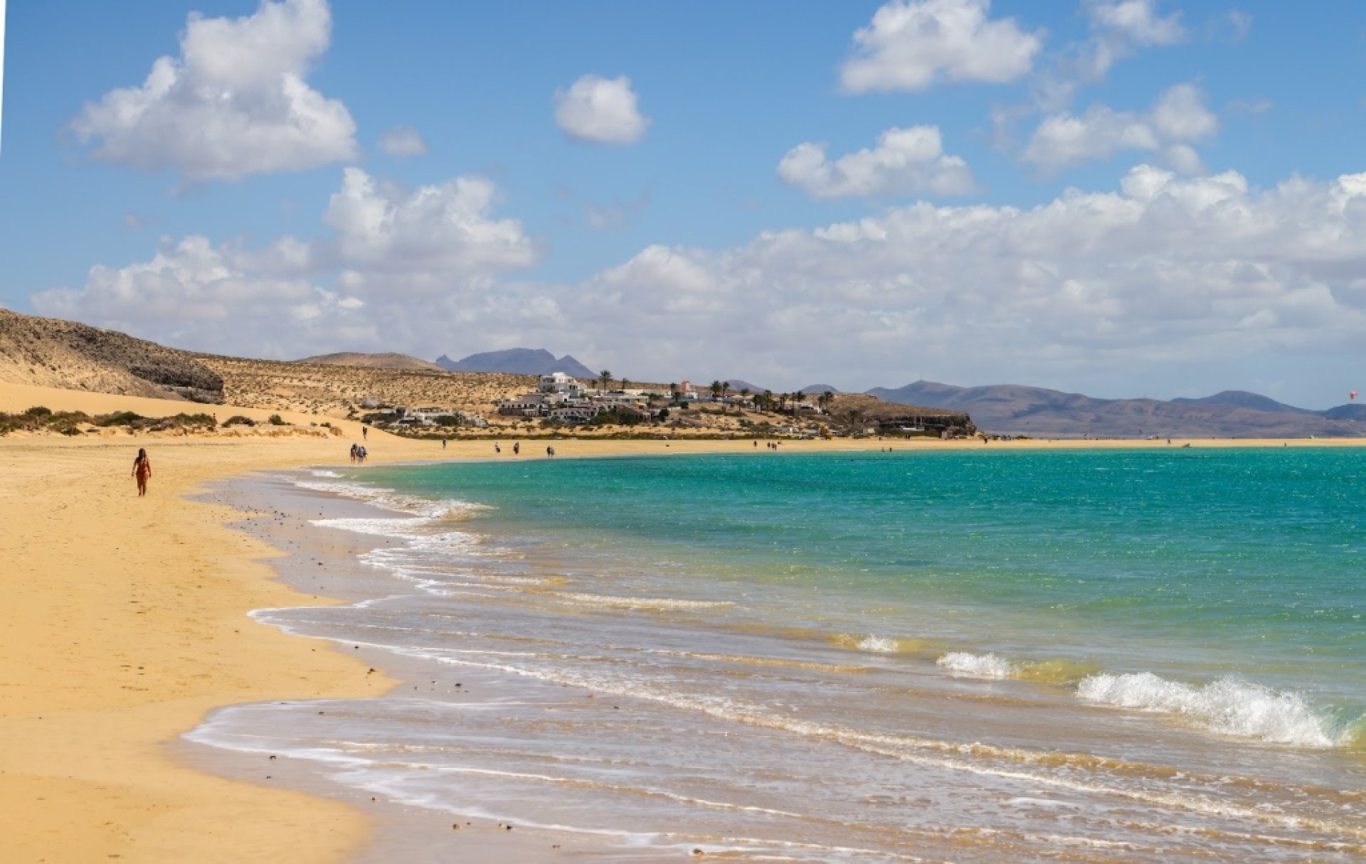 Fantastic experience: Barca beach or Sotavento beach is a unique place on the island of Fuerteventura, where the whim of nature allows you to find one of the most singular beaches in Spain. This paradisiacal enclave stretches over nine kilometers of fine sand and turquoise waters. However, the main peculiarity of Sotavento is its curious distribution, as the whims of the sea have shaped a singular beach with two shores, much more visible at low tide. If you are lucky enough to enjoy a day at this beach without wind, you will fall in love with the scenery of the place.