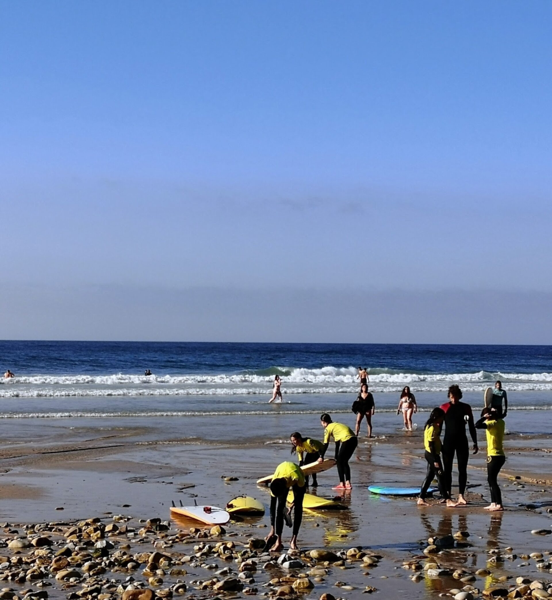 Fantastic experience: Very spacious beach, with fine white sand, easy access by car (although the parking is more crowded in summer). It has showers and a beach bar that serves food, surf school.