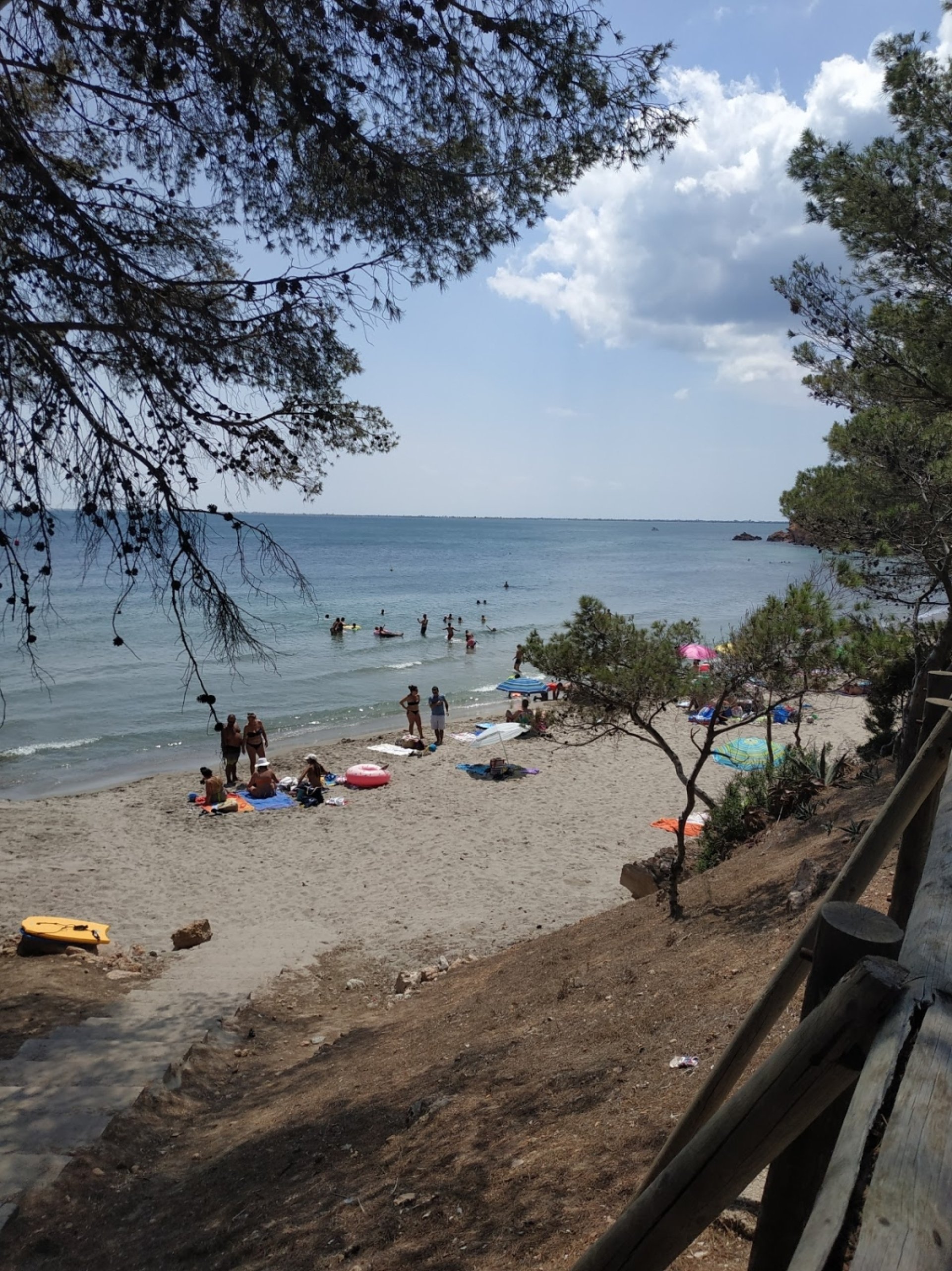 Fantastic experience: One of my favorite beaches, not overly exploited, a combination of beach and forest, 2 beach bars, and not overcrowded considering it's in the Mediterranean.