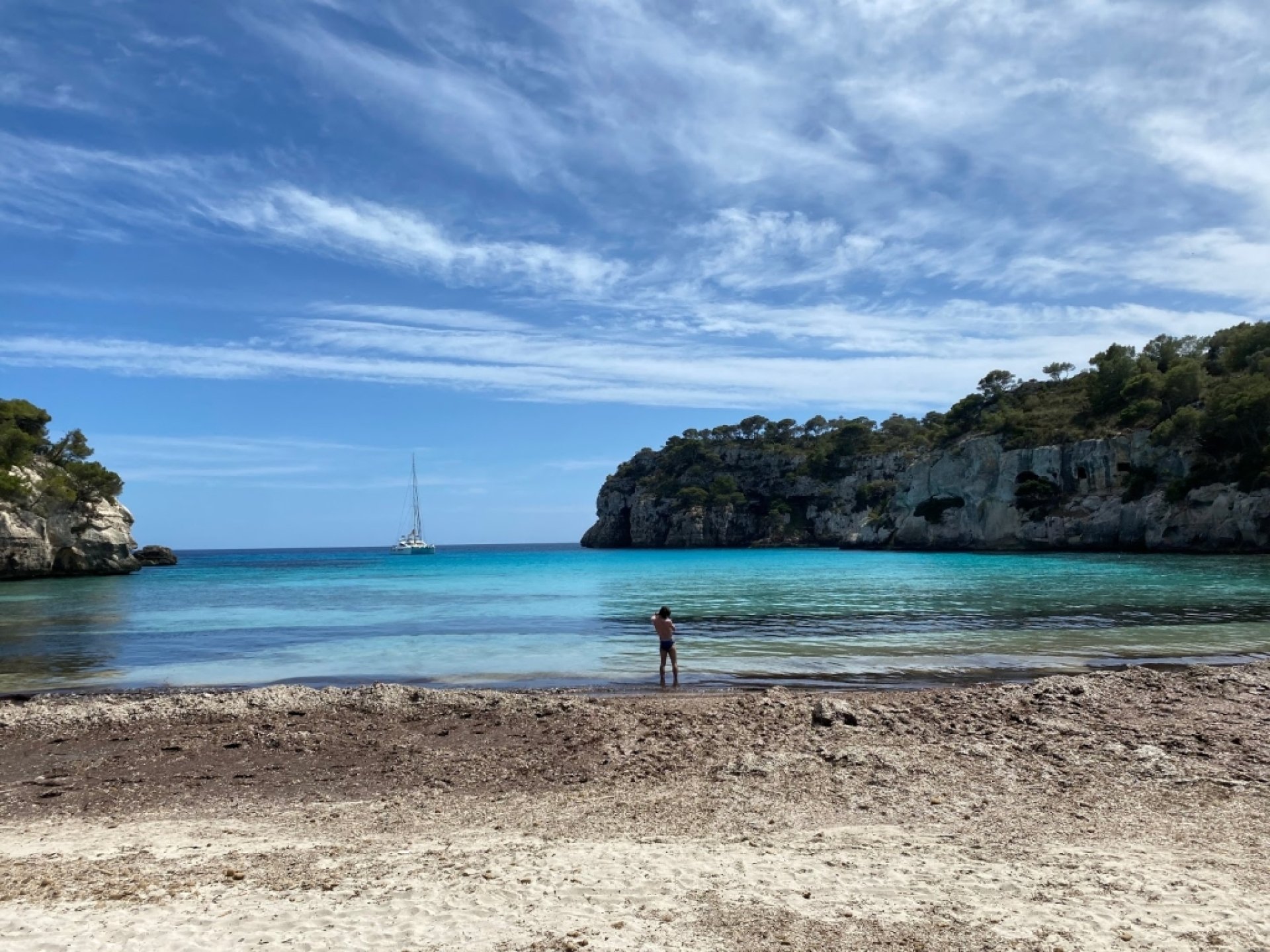 Negative experience: The beach is very, very, very overrated. I have to say that with the storms this year it has been destroyed; there were so many seaweeds that it looked like oil, it smelled bad. Menorca has dozens of more beautiful coves than this one; it is an incredible island, don't just stick to the coves that are sold on the internet.