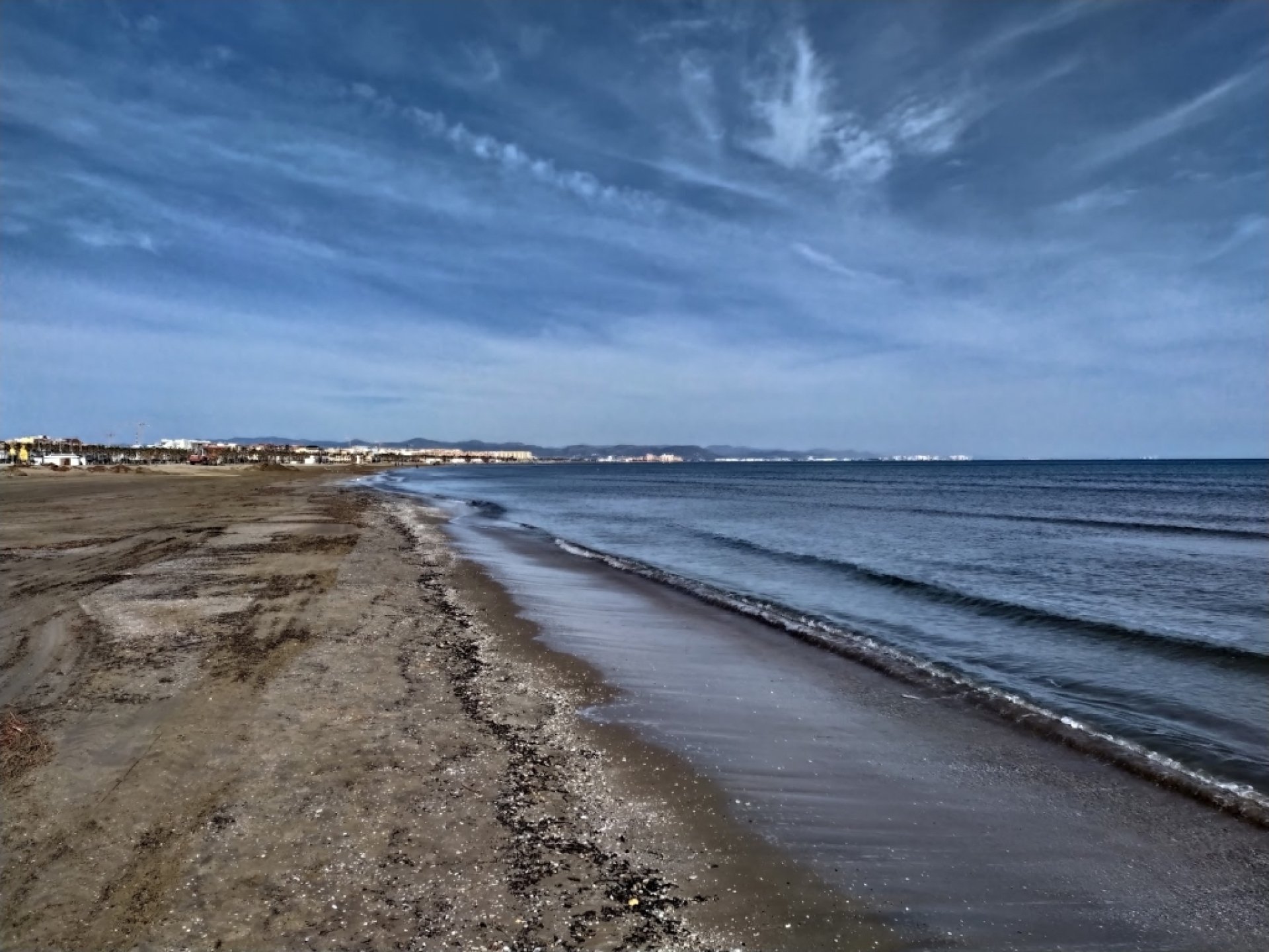 Positive experience: Overall a beautiful beach. We experienced all kinds of weather here for the last three months. The beach is flat, very quiet, suitable for children, and very wide. It was never crowded in September. There are two smaller local options and water sports facilities near the harbor. Foot showers are available and operational until mid-October. Groups regularly meet for volleyball, in which you can participate. The water was rarely clear during our time here and mostly slightly to strongly stirred up, so it is not suitable for diving. Until about October 15, the beach was regularly cleaned. Since then, the beach has been left to itself, only larger trees that were washed ashore after DANA are regularly removed. With the end of the season, it has become a real natural beach. Accordingly, you find a lot of Posidonia (seagrass) piled up along the shores. However, one must also know that it protects the beach from erosion. Due to the floods of recent days (October/November 24...), all sorts of plastic waste, bushes, and sticks are also washed ashore. The locals collect it themselves to some extent. This has made the beach uninhabitable. It smells in places, many insects gather, and you should watch your feet, as many prickly plants lie on the ground. I had hoped that at least the garbage and sticks would be removed or a place on the beach would be kept free for swimming. That doesn't seem to be planned. Therefore, we are going to El Arenal in Javea, which is still clean. In summary, it is a beautiful beach that is good for swimming during the season. Outside of the season, it is left to nature, which is reasonable in a way, but can be frustrating for tourists.