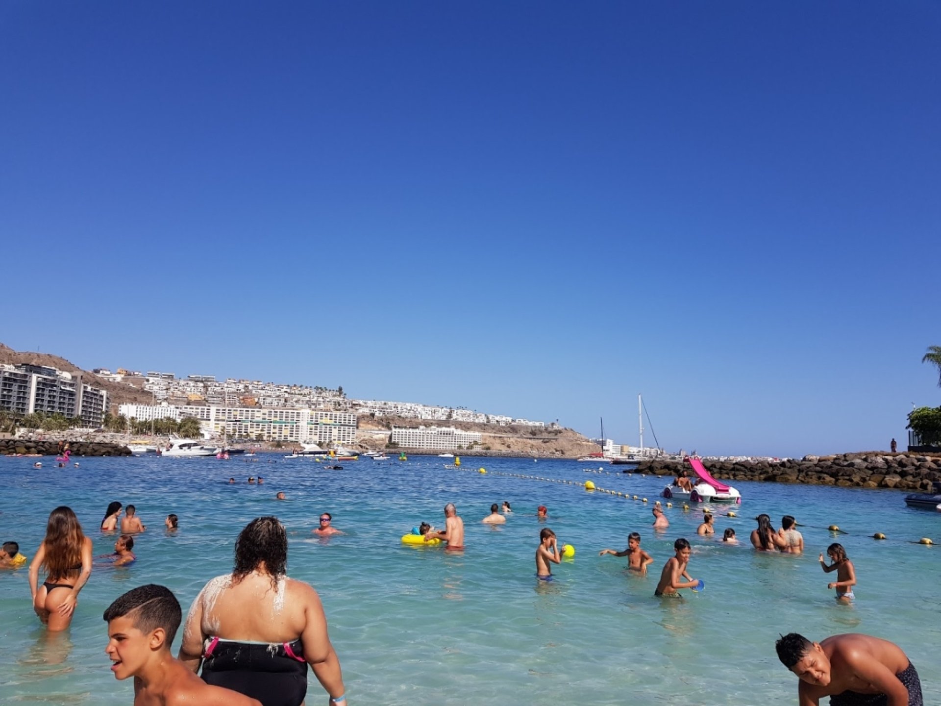 Fantastic experience: Beautiful beach, but extremely busy. Would absolutely recommend walking the coastal path to Arguineguin , there's an awesome natural pool that's excellent and safe for snorkelling.