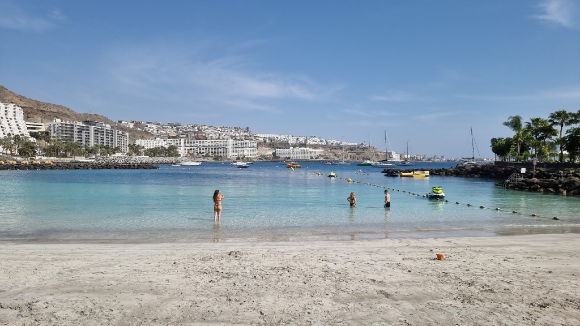 Fantastic experience: Not entirely unjustly is this referred to as the bounty beach of Gran Canaria! (excluding the luxury hotel complex built against the rocks) This dreamy place includes a landscaped garden, a docking area for smaller yachts, nice bars, restaurants, and trendy shops. There was a fine, white sand beach with crystal clear water and comfortable normal or luxury sunbeds and umbrellas. Along the promenade, you could use toilets and showers. Furthermore, there was also a water sports center where you could jet ski, parasail, and also rent a kayak or pedal boat. Definitely worth spending a day or even your entire vacation there!