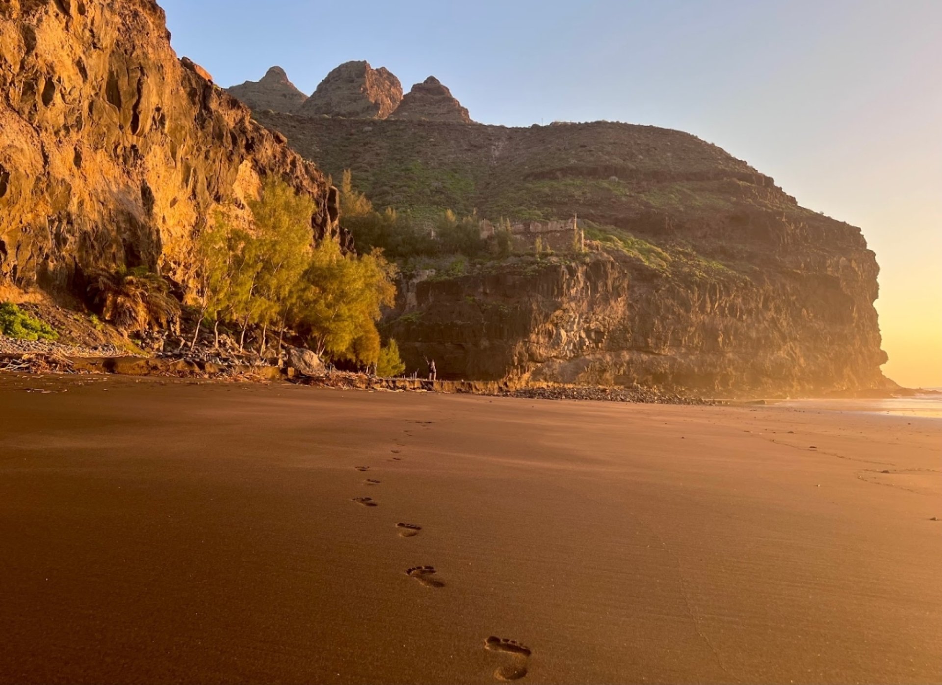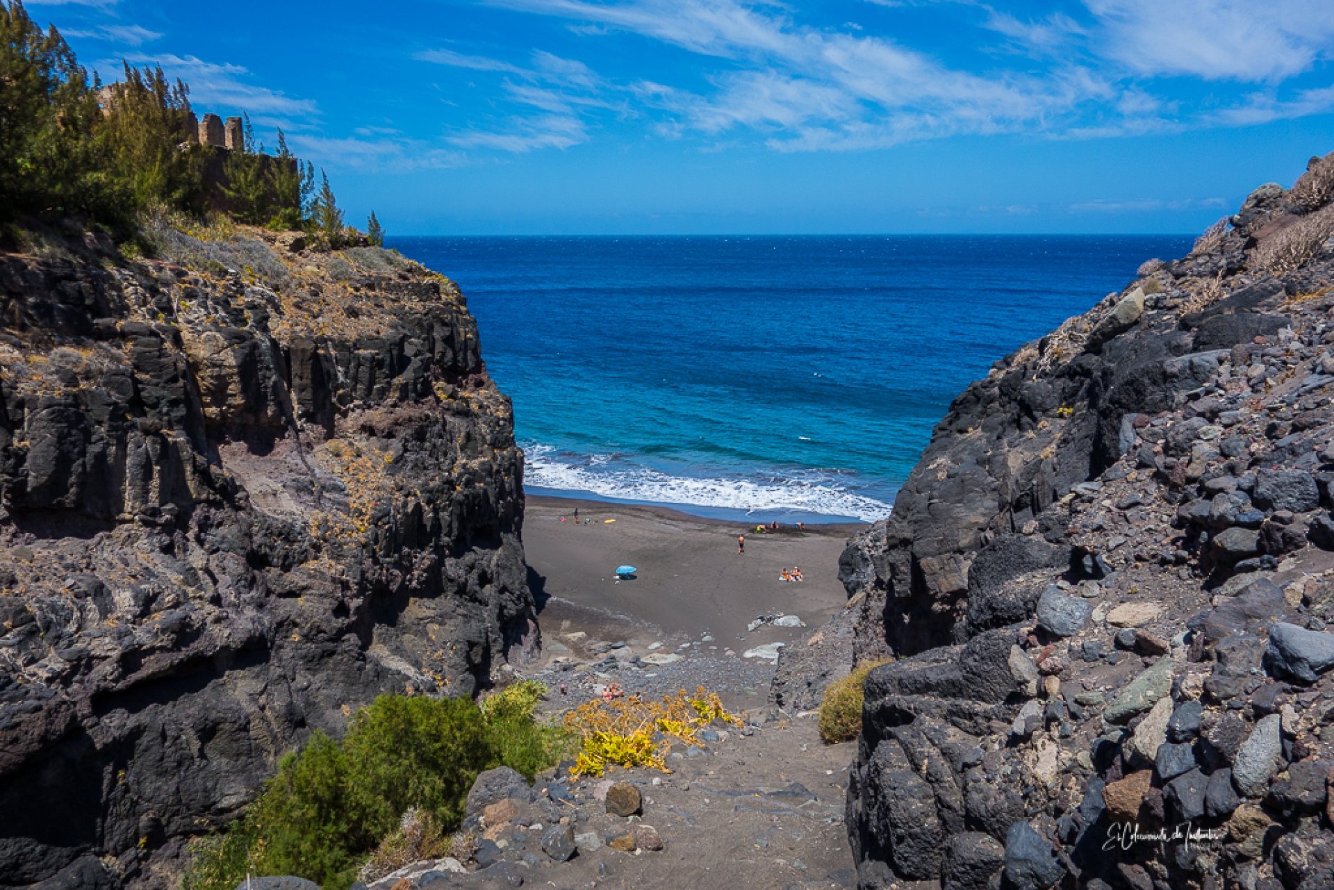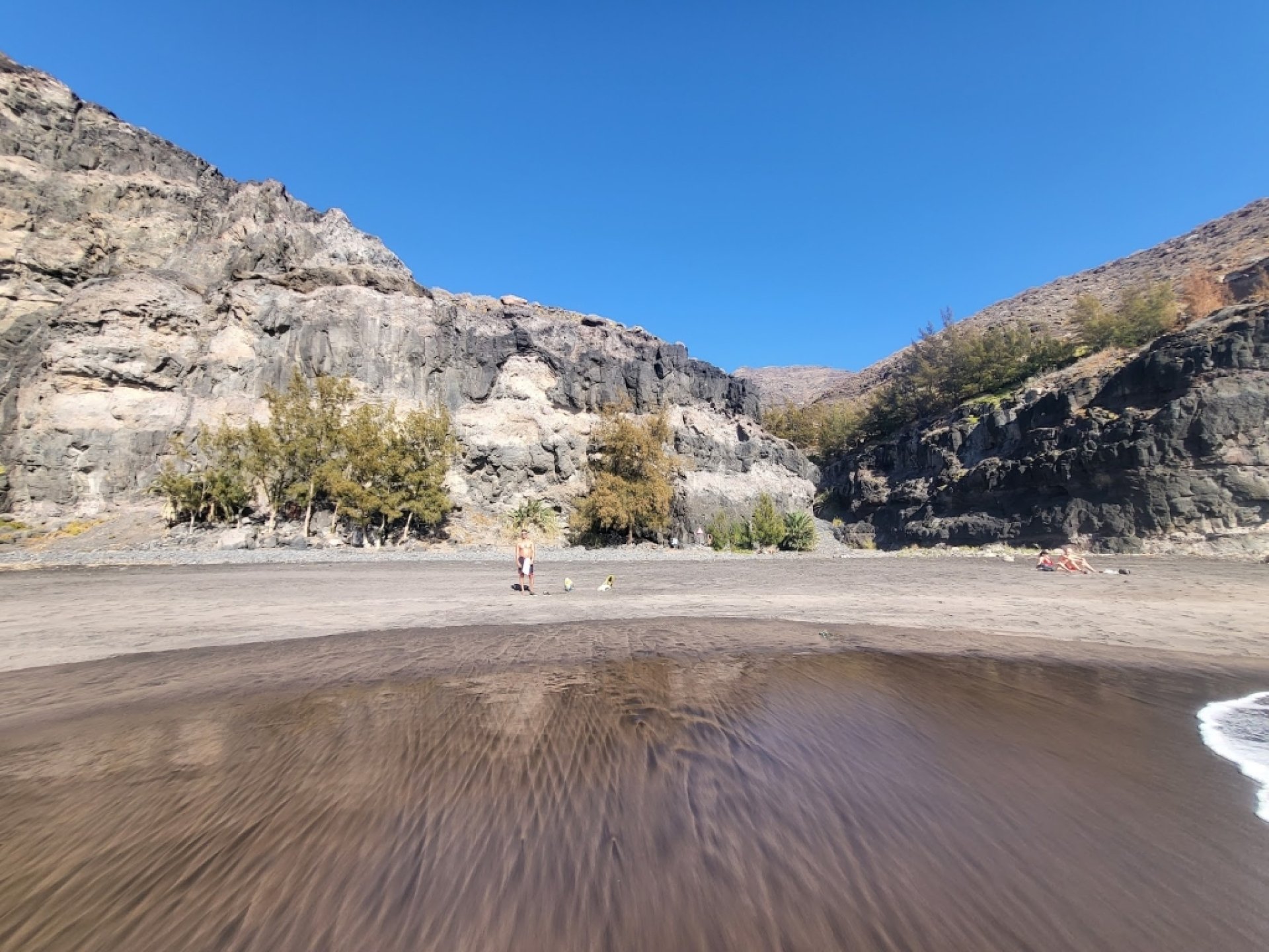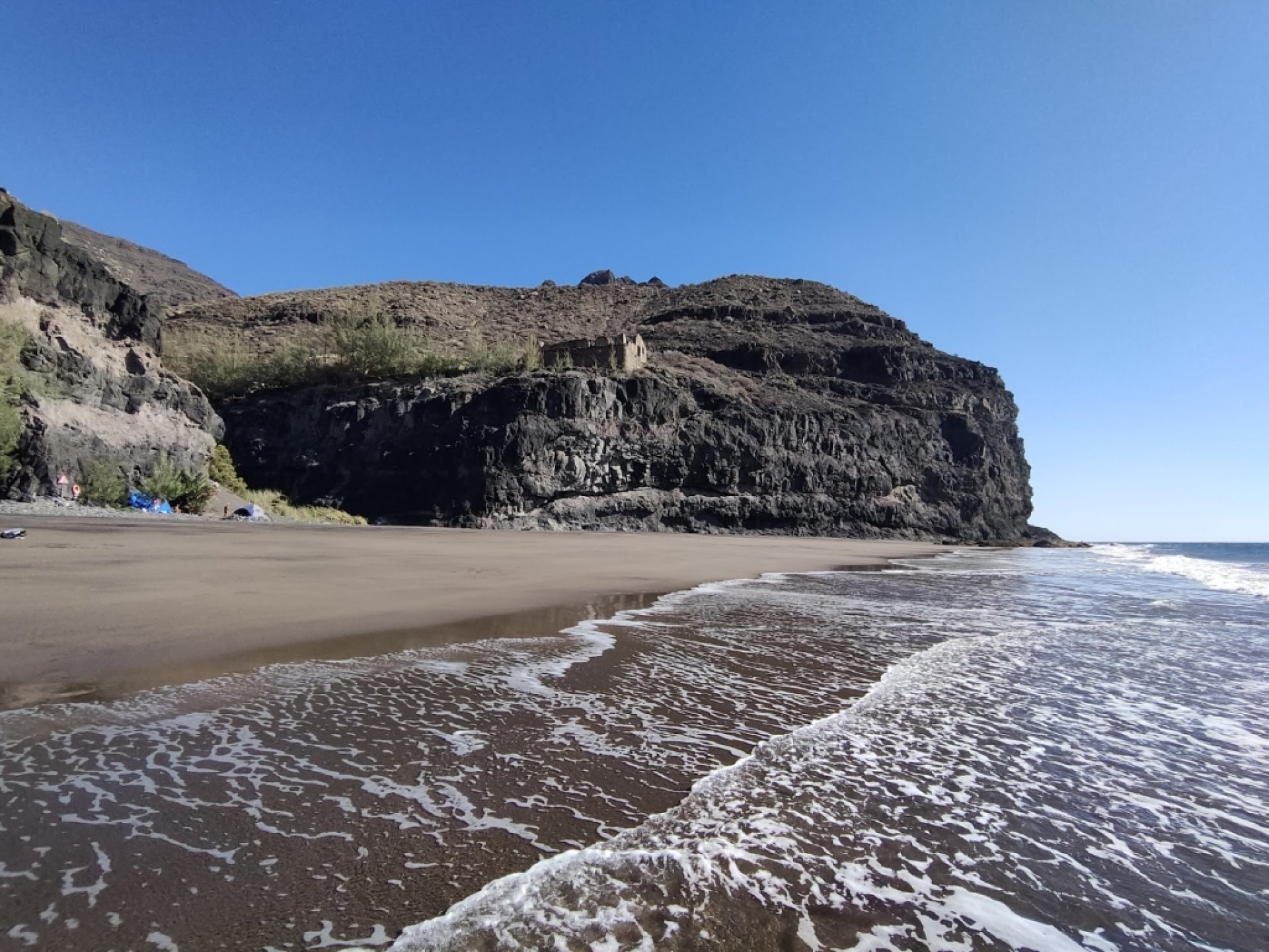 Fantastic experience: Charming beach with very fine, black sand. Tranquility, few people, and nature itself. The route from Tasartico is demanding! The trail is partially mountainous with loose stones (slippery!). Bring good shoes, plenty of water (1.5-2L/person!), something to eat, sunscreen, and stamina. No mobile phone reception almost all along the route! About 900m elevation difference spread over 5.2km. Starting from Tasartico at about 180m above sea level to the pass at 550m, the route is about 2km long, then 550m down over about 3.2km. I walked with my 7-year-old son in about 2.5 hours, but only because he is an experienced hiker. At this time of year (October 31), plan to return no later than 4 PM to avoid reaching Tasartico in the dark. The views are phenomenal, and the trip is highly recommended. It stays in your legs and memory for a long time.
