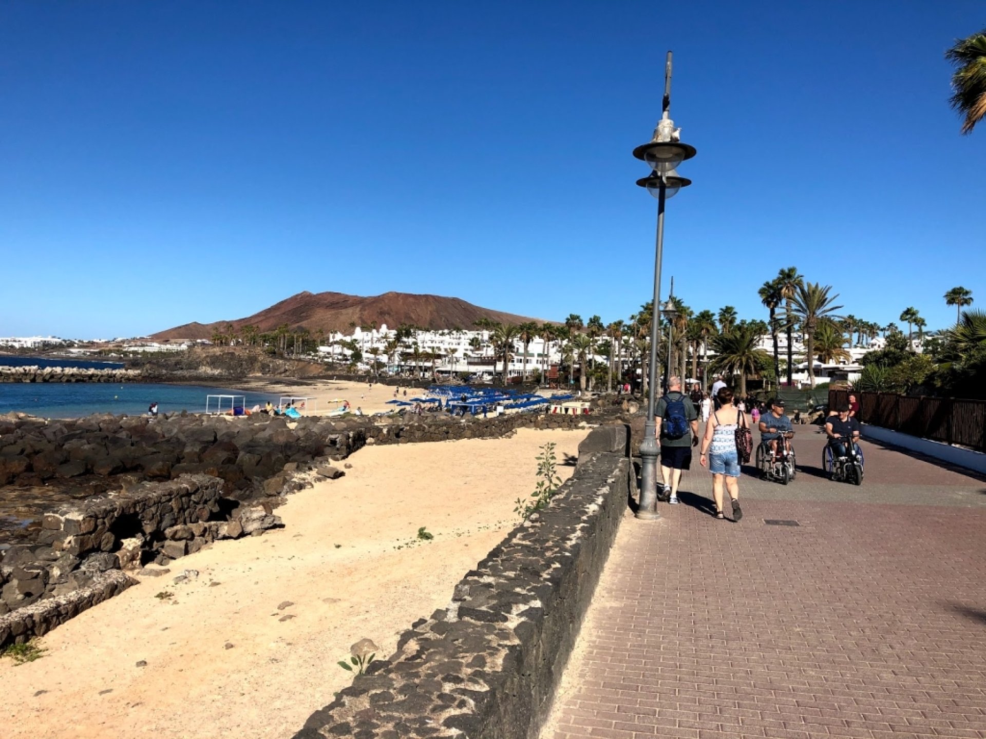 Fantastic experience: Very nice beach at Playa Blanca with golden sand and a cove sheltered by breakwaters where it is possible to swim. The beach is not very large, but there is always space, at least in autumn. There is a nice promenade where it is possible to take long walks, and there are several small places, shops, and some markets.
