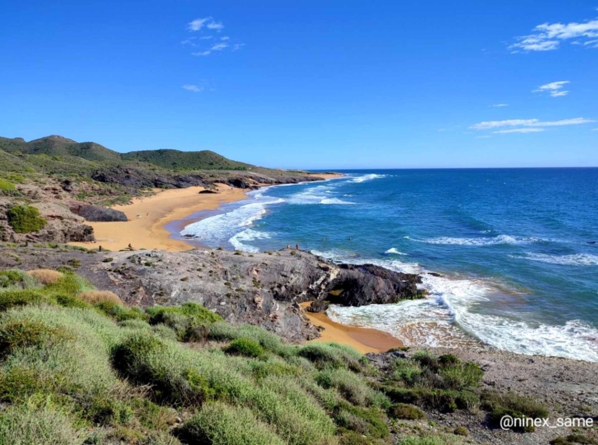 Fantastic experience: Beautiful semi-virgin beach in the Region of Murcia. It's a set of coves with crystal clear waters and fine sand. The area is beautiful, accessed through a pine forest. You can leave your car near Playa Larga. In summer, you can only access it by bus. Highly recommended visit, one of the best beaches in the region.