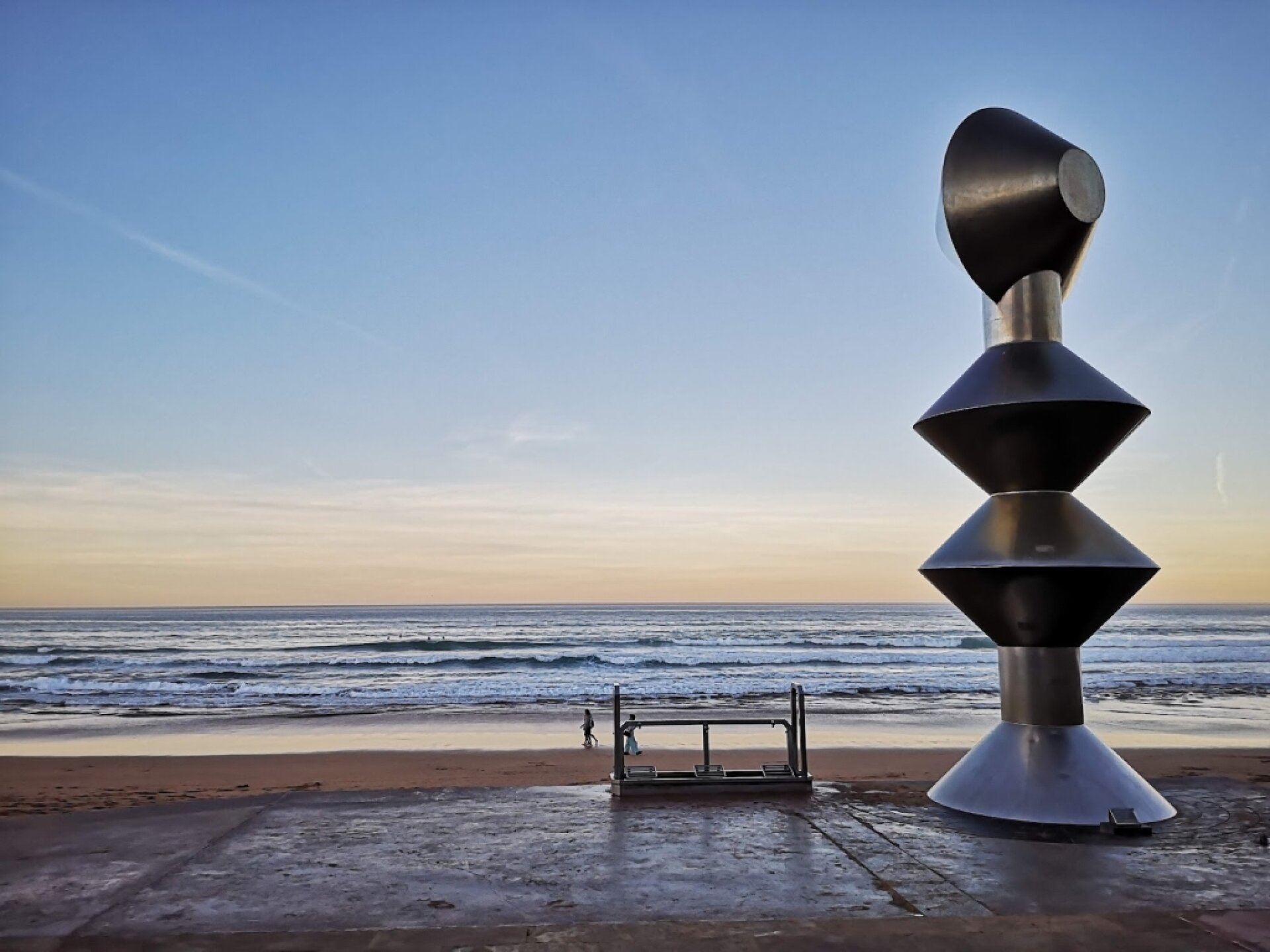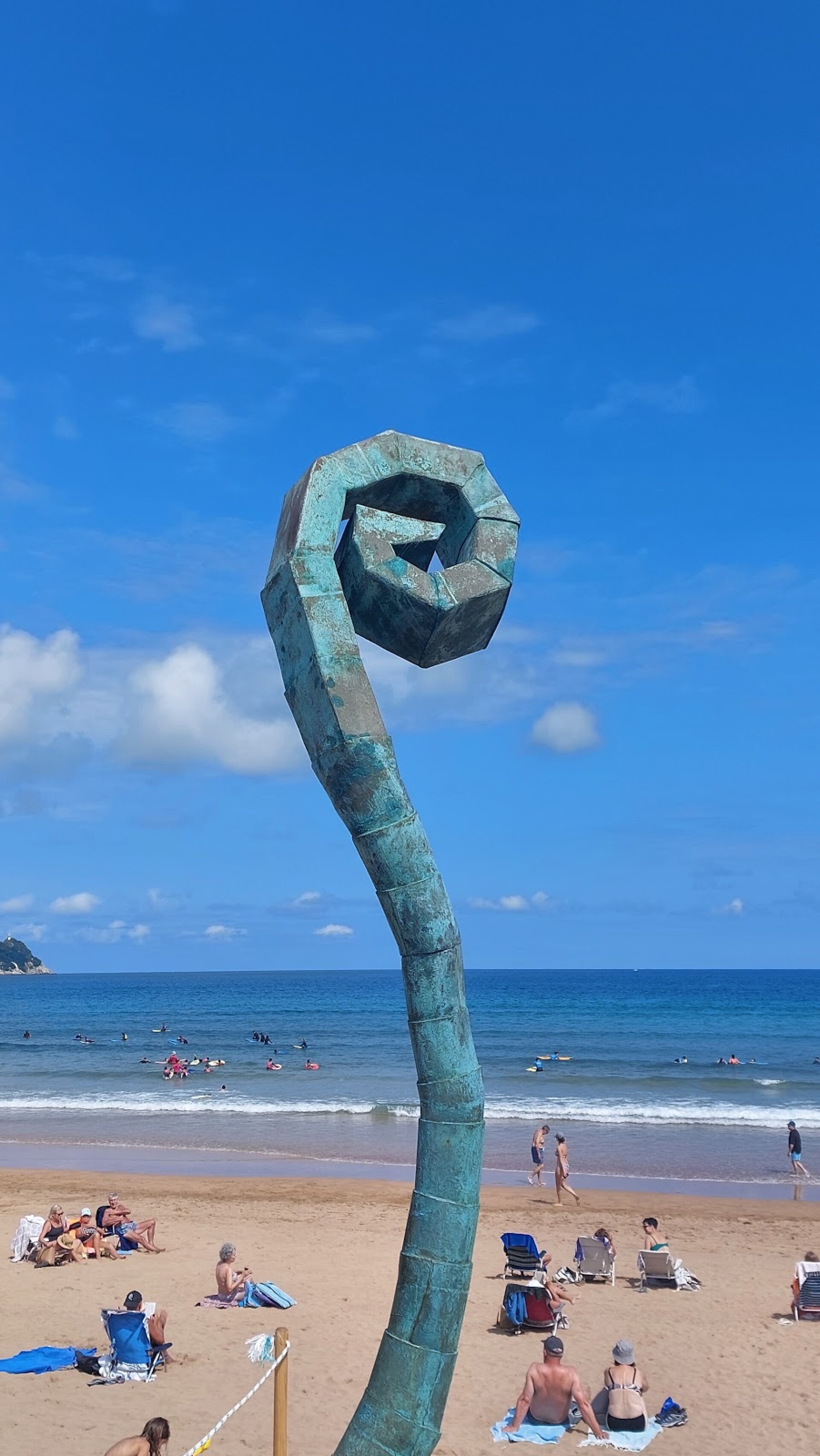 Experiencia fantástica: Playa larga, de más de 2 km, con viento y olas fuertes que siempre suelen estar llenas de surferos, especialmente en otoño, esta última vez el mar estaba en calma. En verano está jalonada de sus típicos toldos/vestuarios de rayas verdes y blancas, entremezclados con otros azules y blancos. Tiene un paseo marítimo que la recorre íntegramente con esculturas de todo tipo, destacando para mi gusto una que se llama Vaivén, de madera, hierro y latón con restos de barcos de colores. El agua suele estar fría muy propia del Cantábrico, pero se puede nadar si acompaña el oleaje. Hay duchas, lavapies, baños, columpios, y sitios para tomarte algo, lo peor es el aparcamiento. Desde la playa tienes vistas del ratón de Getaria y un paseo peatonal a pie del mar para ir hasta esta localidad.