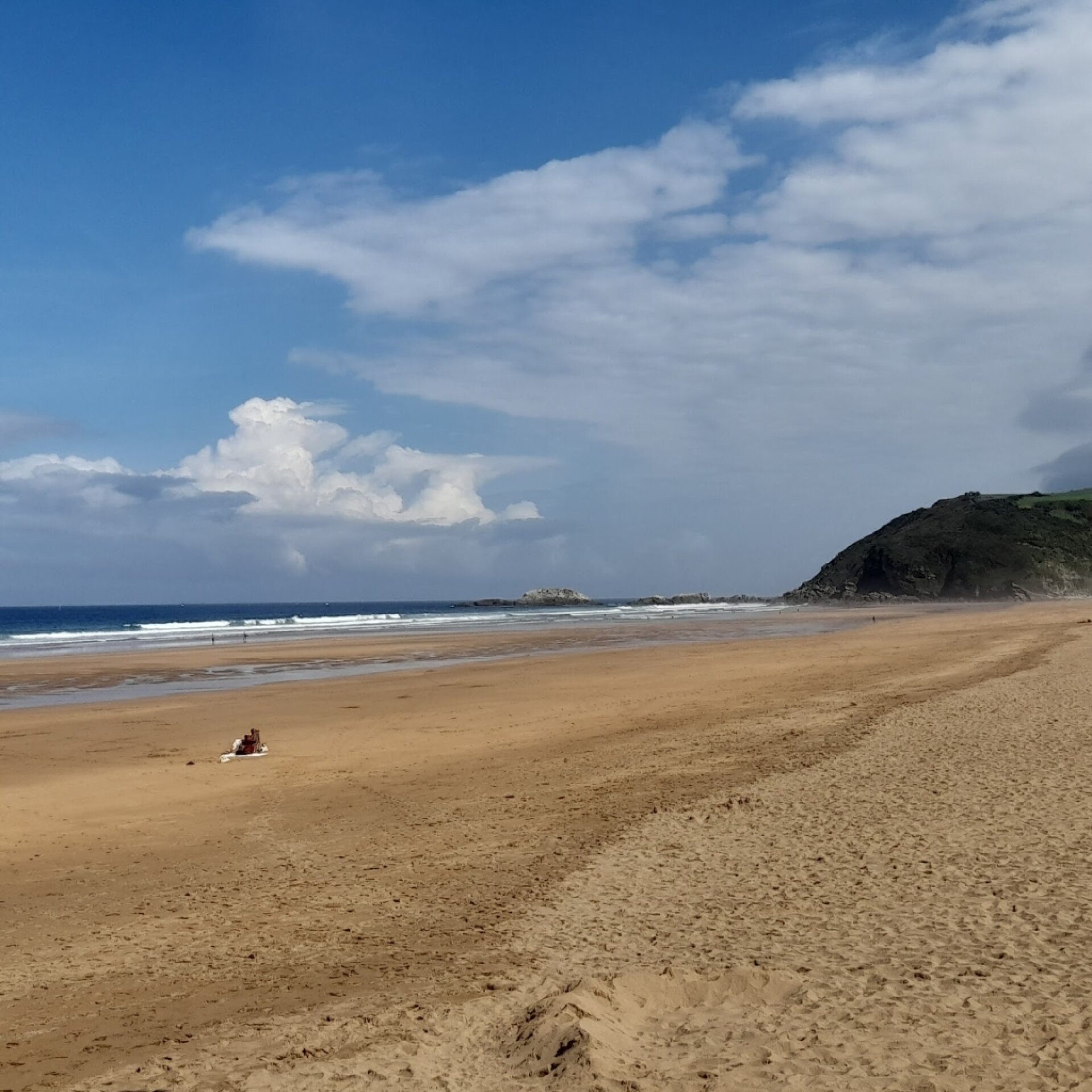 Experiencia fantástica: Playa con un ambiente muy bueno, muy extensa y que con marea baja deja muchísima area de arena, ideal para los niños. Mucho surfero. Los socorristas delimitan las zonas y están pendientes. Cuando hay olas te lo pasas genial. Zona de aparcamiento de pago en todo el municipio. Recomiendo ir pronto para poder aparcar en temporada alta. 14€ por toda la tarde en zona azul.