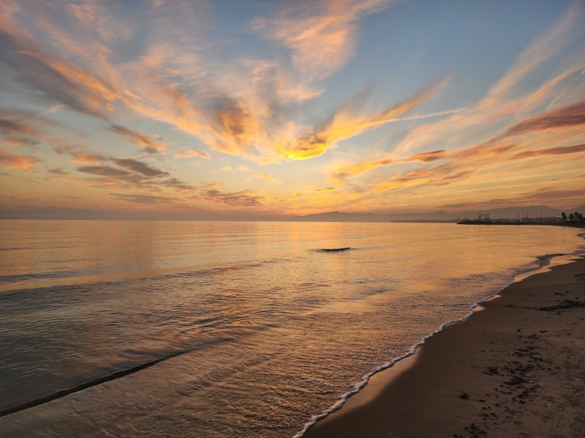 Experiencia fantástica: Preciosa playa para disfrutar de las vistas del mar el atardecer en invierno y pasear un espectáculo a pie de calle