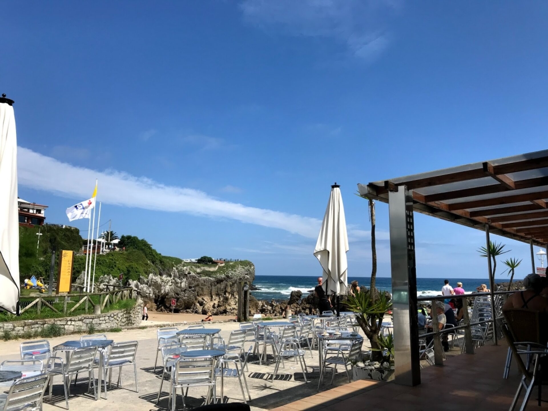 Experiencia fantástica: Una playa genial con todos los servicios cerca ten en cuenta que de rocas y que la marea afectará mucho a tu experiencia. Un chiringuito cerca que sea un pelín se pinta precio pero muy a gusto para tomar sidra en primera línea en un banquito de piedra.