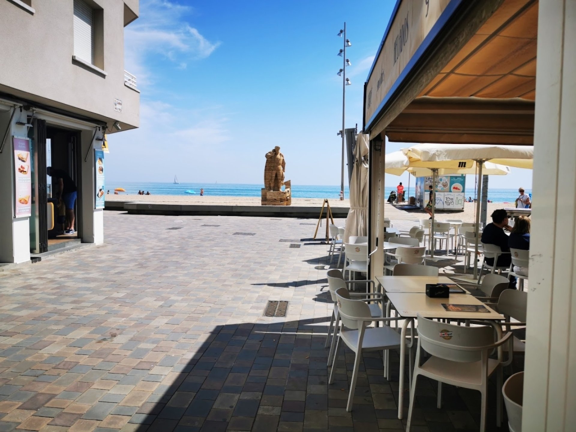 Experiencia fantástica: Playa súper accesible desde la C32 o desde la estación renfe. Múltiples sitios para comer y farmacias también.