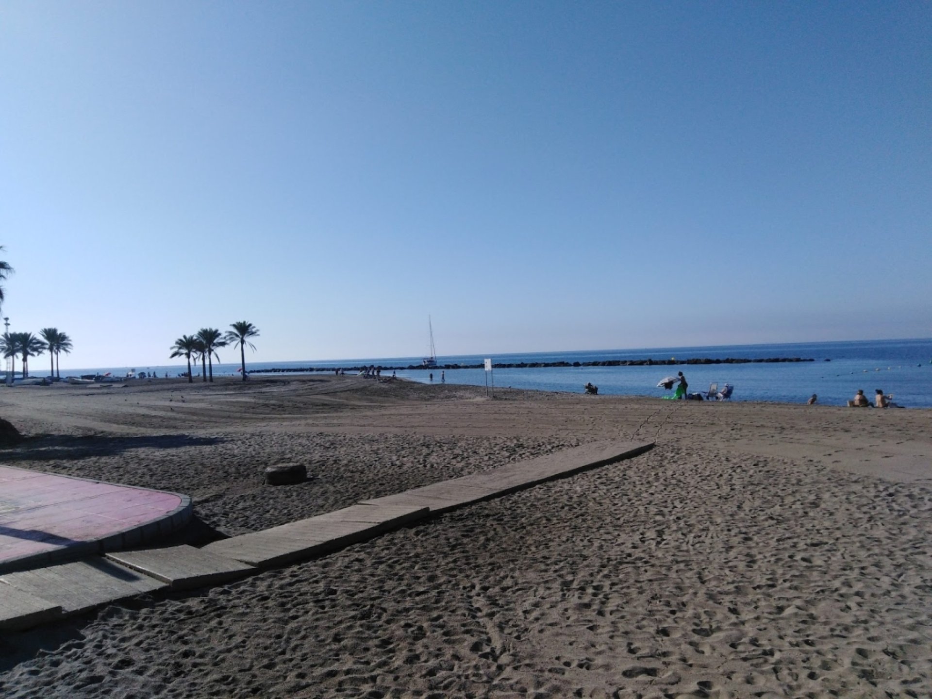 Experiencia positiva: Es amplia, con bastantes accesos en rampa, lavapiés, es de piedras pequeñas, en algunos tramos diminutas, incluso dentro del agua. Hay una sola zona de alquiler de sombrillas y tumbonas, hay q andar bastante desde el comienzo del paseo marítimo para llegar, cuesta 10€ todo el día. Zona para personas con movilidad reducida. Puestos de socorro. En algunos tramos hay grupos de palmeras.