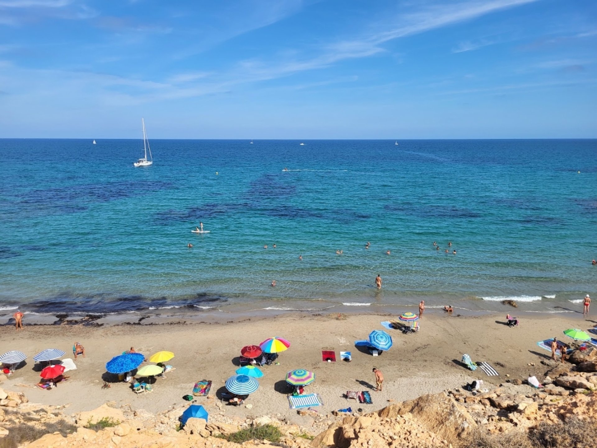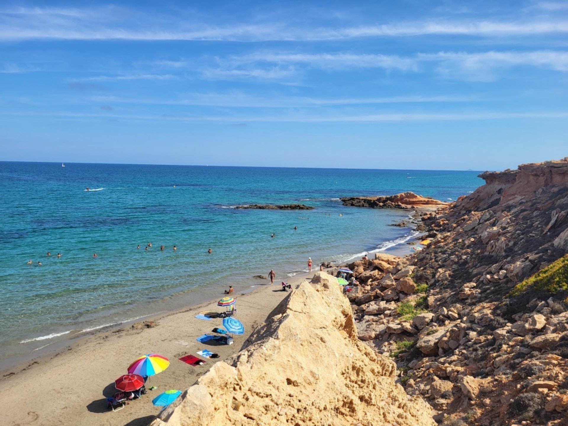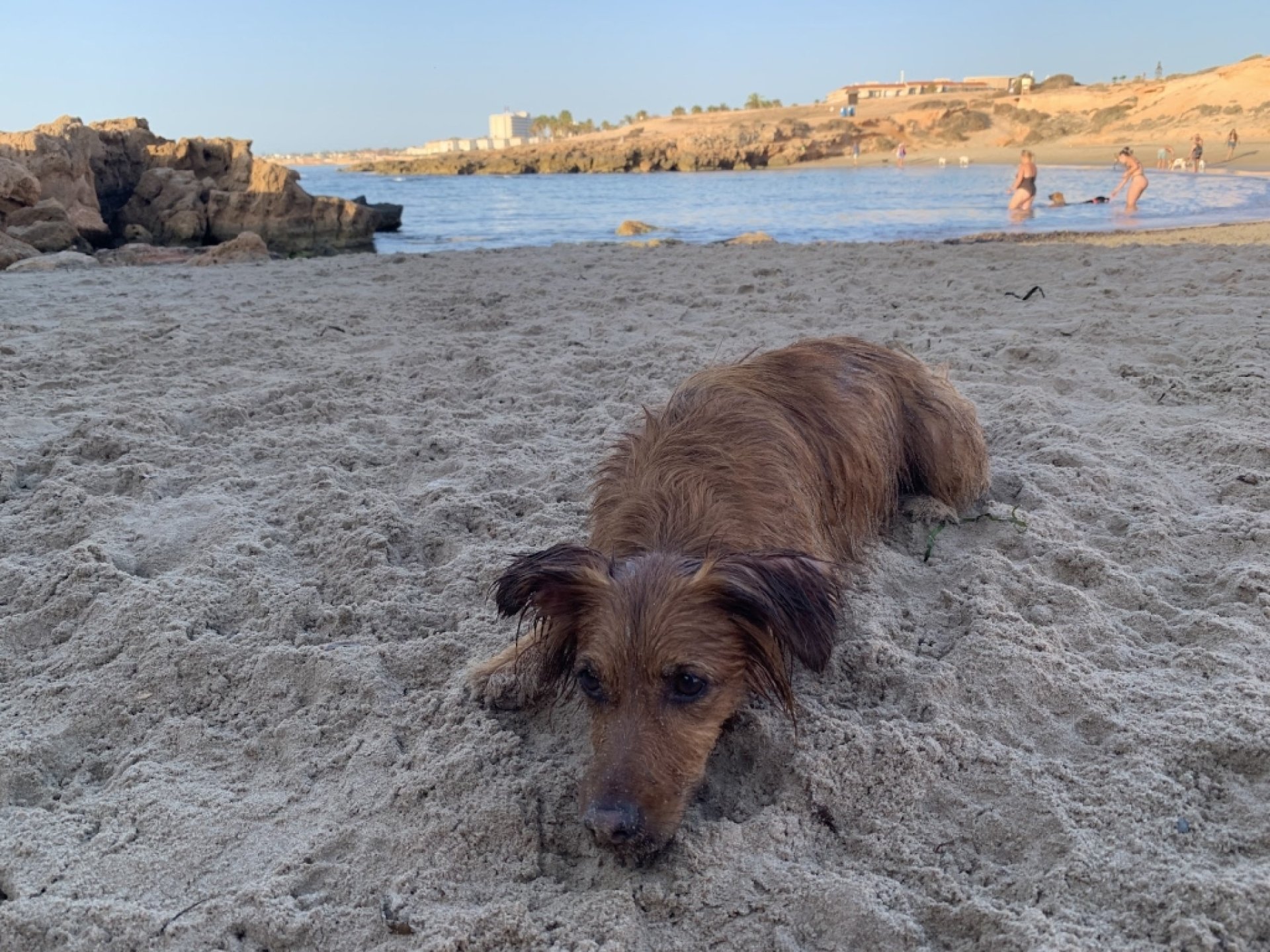 Experiencia negativa: Nos intentaron robar el coche. Es una playa de perros muy chula, de las mejores que hay por la zona (no son muy buenas las playas de perros por aquí). Tienes que dar un paseo hasta llegar a la playa que no tiene ningún servicio (lleva agua para ti y sobre todo para el perro). Al volver puedes usar el lavapies de la playa de personas que tampoco es una maravilla pero al menos tiene. En una hora que estuvimos en la playa, cuando llegamos al coche nos habían reventado la cerradura, se ve que llegamos pronto o se les complicó y no pudieron llevarse nada. La guardia civil y la local de Orihuela ni se acercaron, estarán cargado somos de trabajo imagino. También me dijo la guardia civil que poner una denuncia me llevaría entre 6 y 8 horas.