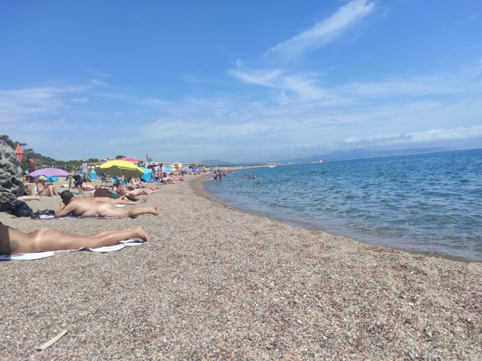 Experiencia positiva: Playa bastante grande con arena gruesa. Hay dos puestos de cerveza disponibles. Un castillo hinchable en el agua cuesta 15 euros por hora. El ticket de día es de 35 euros. El agua se vuelve bastante profunda rápidamente. No recomendado para niños pequeños. La situación de aparcamiento en la zona es difícil. 3 horas cuestan 6 euros si logras encontrar un aparcamiento. En general, está bien, definitivamente hay playas y calas más bonitas en los alrededores.