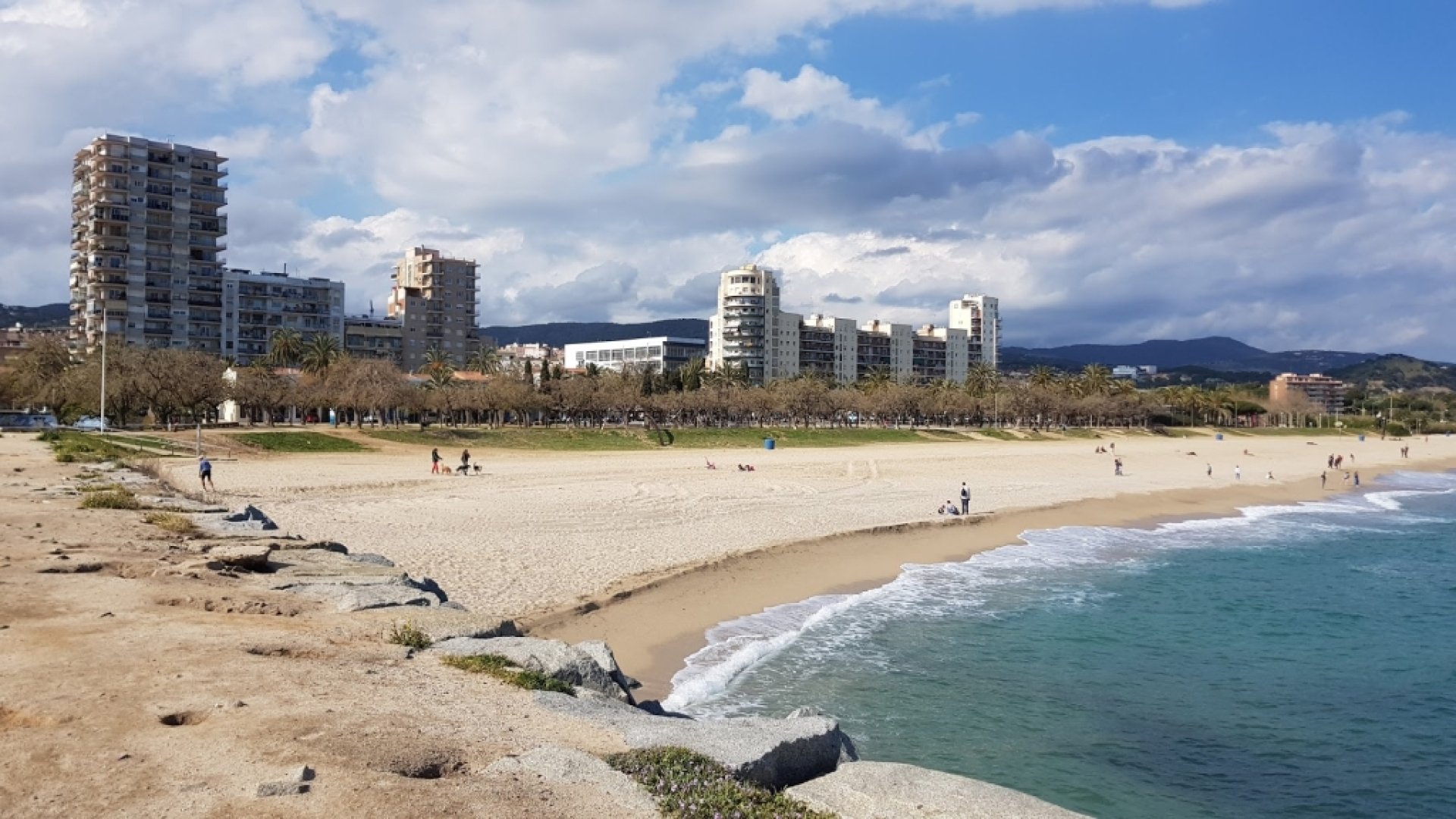 Experiencia fantástica: Playa en Mataró cerca de Barcelona, limpia y tranquila, cuenta con aparcamiento y duchas para bañarse, algunas cafeterías en la playa, y está cerca de una estación de autobuses, tren y metro.