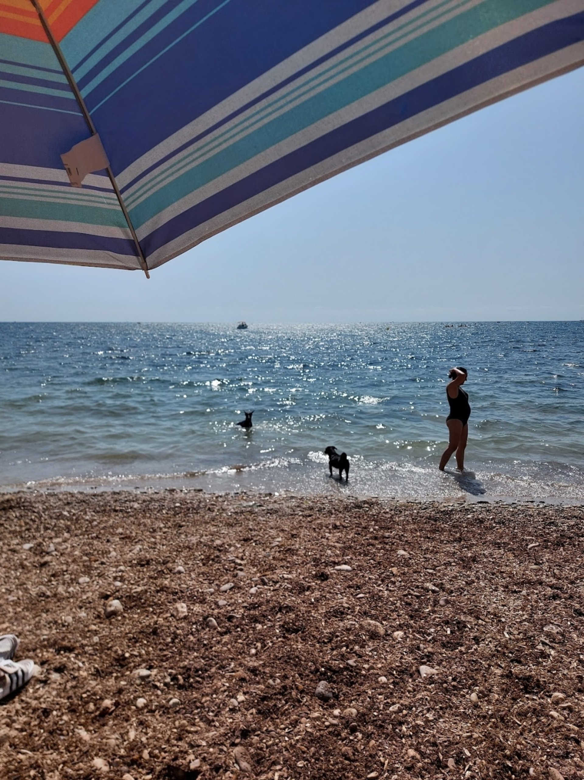 Experiencia fantástica: Playa de perros con canto rodado. Cada vez más llena de gente con sus mascotas