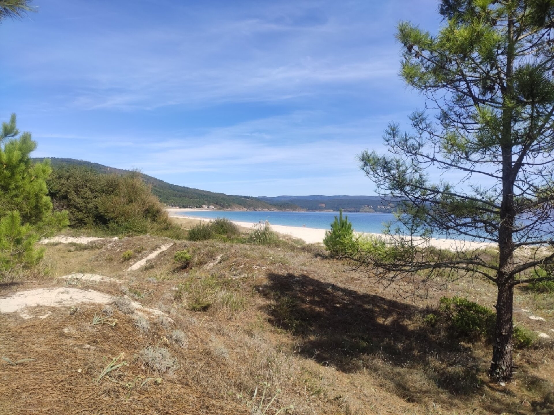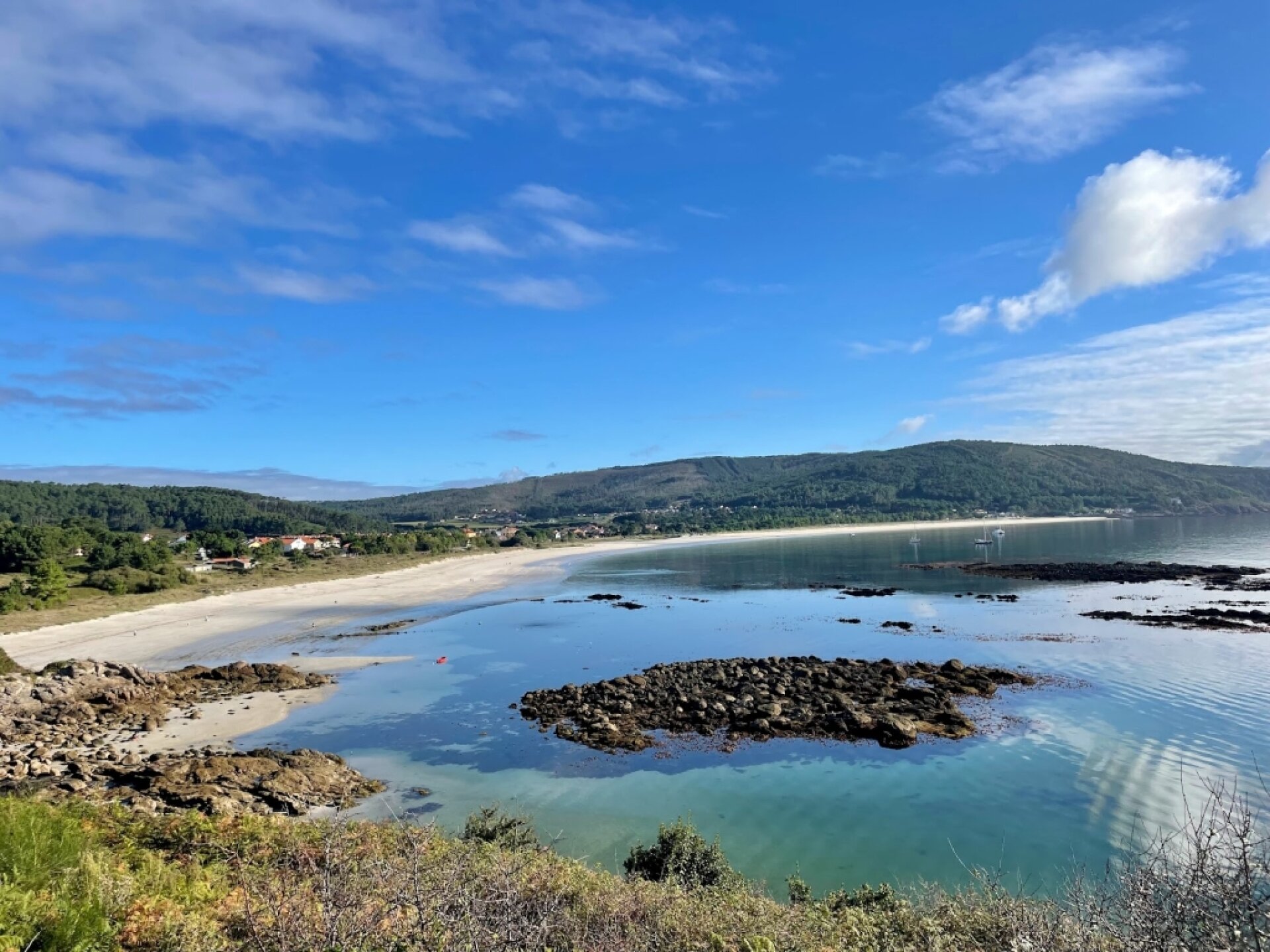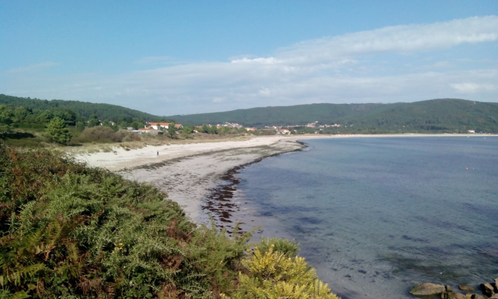 Experiencia fantástica: Playa grande, de arena blanca y fina, rodeada de naturaleza y aguas cristalinas. Por la mañana la marea está baja y puedes apreciar la orilla llena de conchas, las cuáles están protegidas, a media tarde sube la marea y se cubre. Cuenta con ducha y lavapies y distintos accesos a través de plataformas de madera a lo largo de la longitud de la playa. En la parte trasera pasa el Camino a Fisterra y hay varios restaurantes de marisco y pescado.