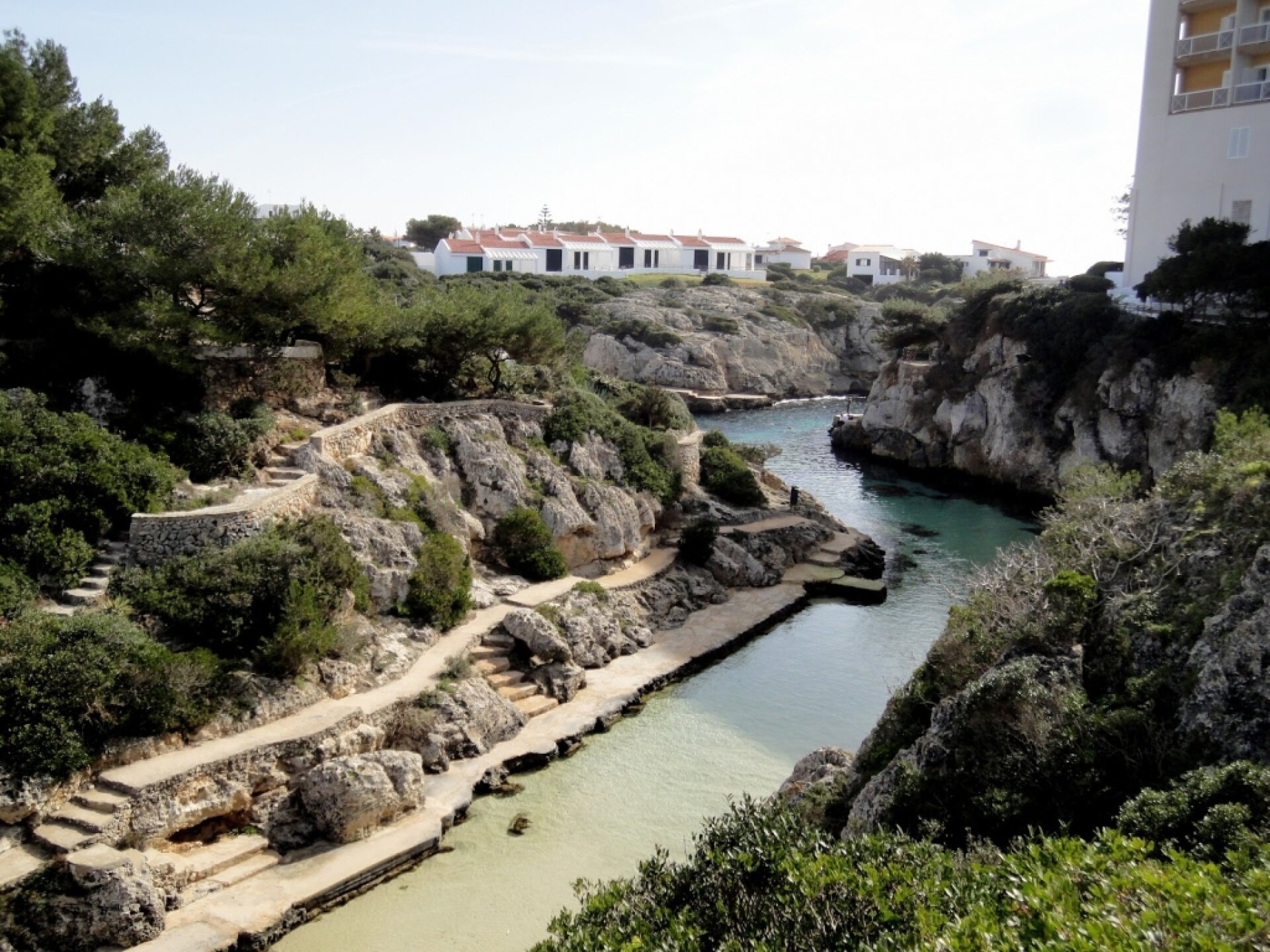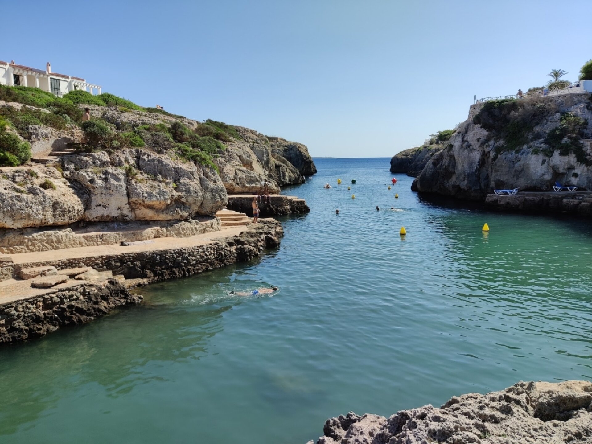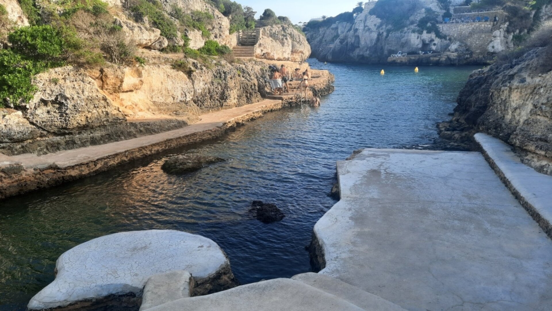Experiencia fantástica: Esta la ideal para bañarse y disfrutar de Menorca en el entorno idílico entre paredes altas de roca con un acceso fácil sin ningún tipo de playita de arena