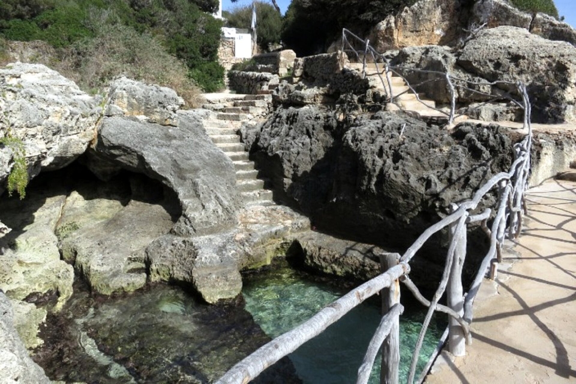 Experiencia negativa: Demasiado feo en comparación con todas las hermosas calas que hay en Menorca, el agua es verde, no es profunda en absoluto, punto positivo es fácil acceso, 5-10 minutos a pie desde el aparcamiento y bien acondicionado.