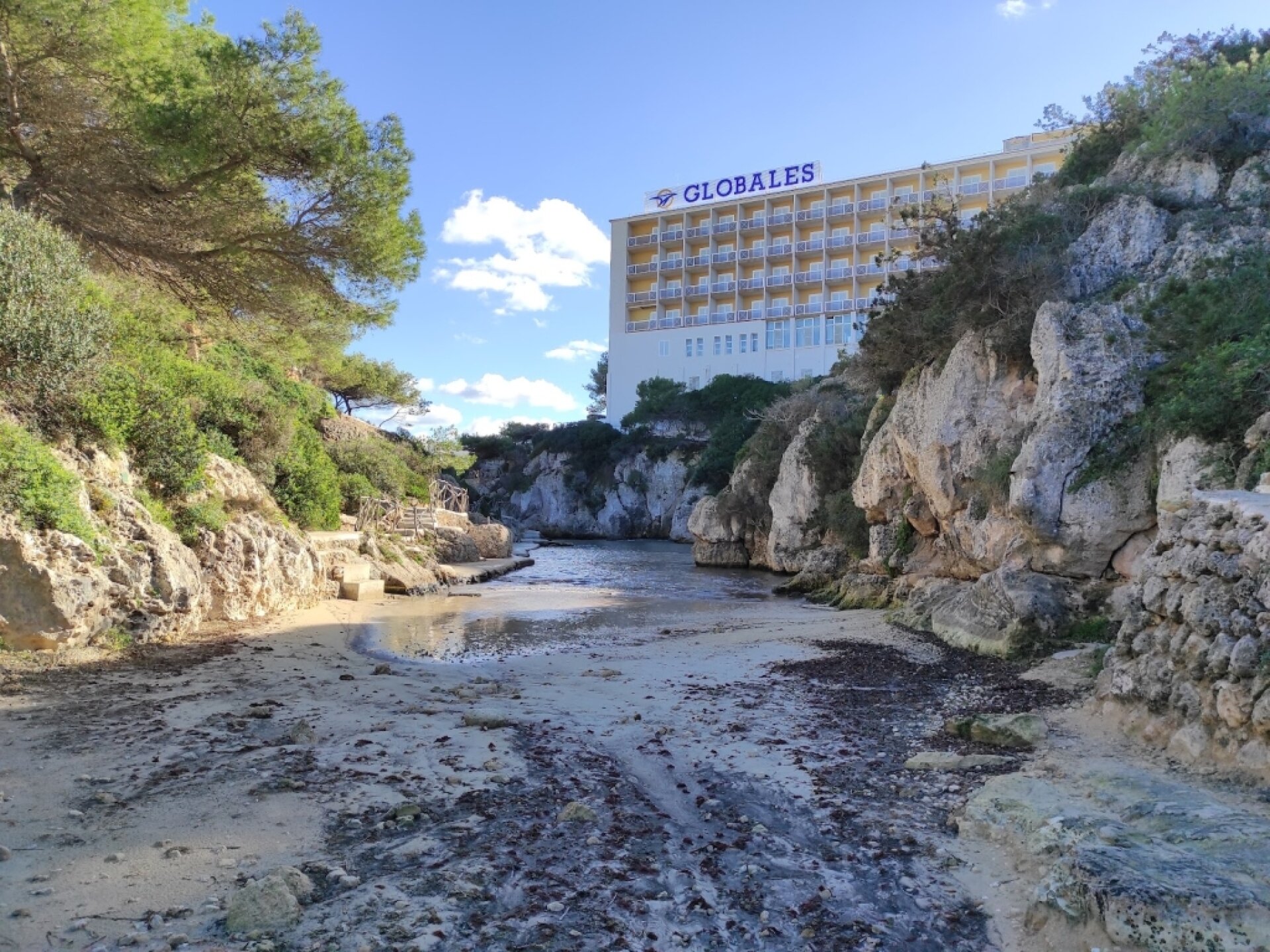 Experiencia positiva: Cala super pequeña al lado de nuestro alojamiento, bastante tranquila. El agua no era de las mejores de Menorca, quizás por la corriente que traía bastante plástico. Para echarse un baño rápido está bien.