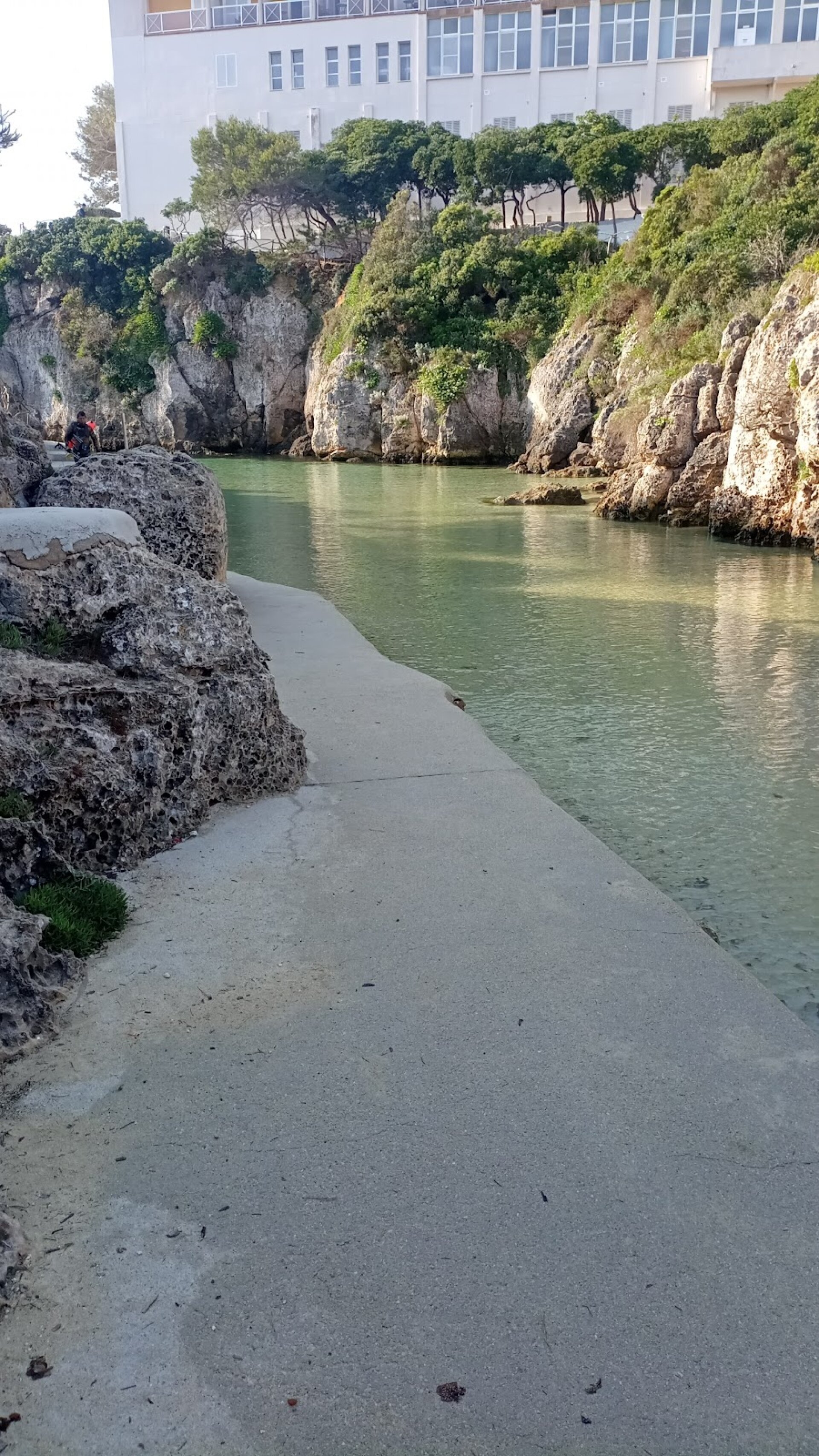 Experiencia positiva: Bonita ensenada marina con un camino alrededor de las rocas. Se proporcionan escaleras para ayudar a salir del agua.
