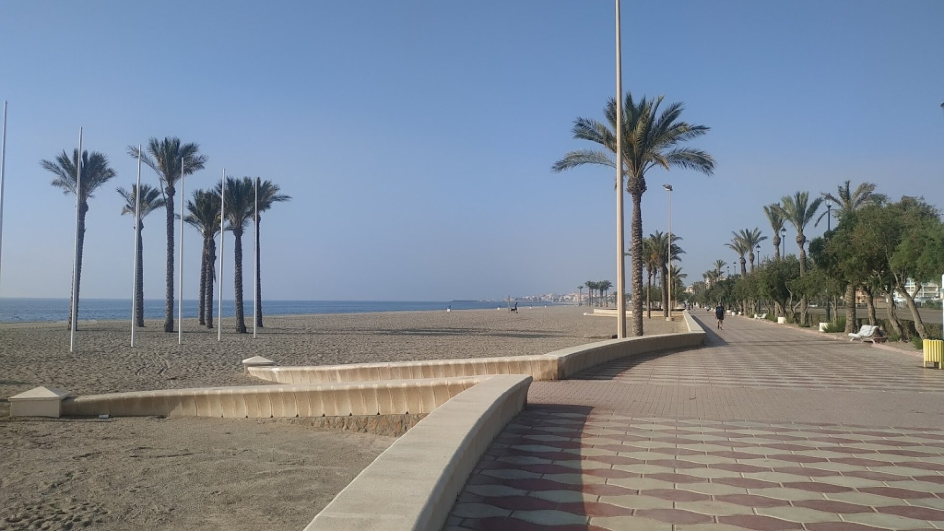 Experiencia positiva: No es espectacular, pero está bonita y limpia. Cuenta con un paseo amplio. De noche se puede estar muy bien en función del tiempo que haya (si hace el viento que suele hacer en Almería a veces es recomendable ir abrigado). Cuenta con un aparcamiento de tierra justo detrás que permite aparcar muy fácilmente y cerca del paseo y la playa.