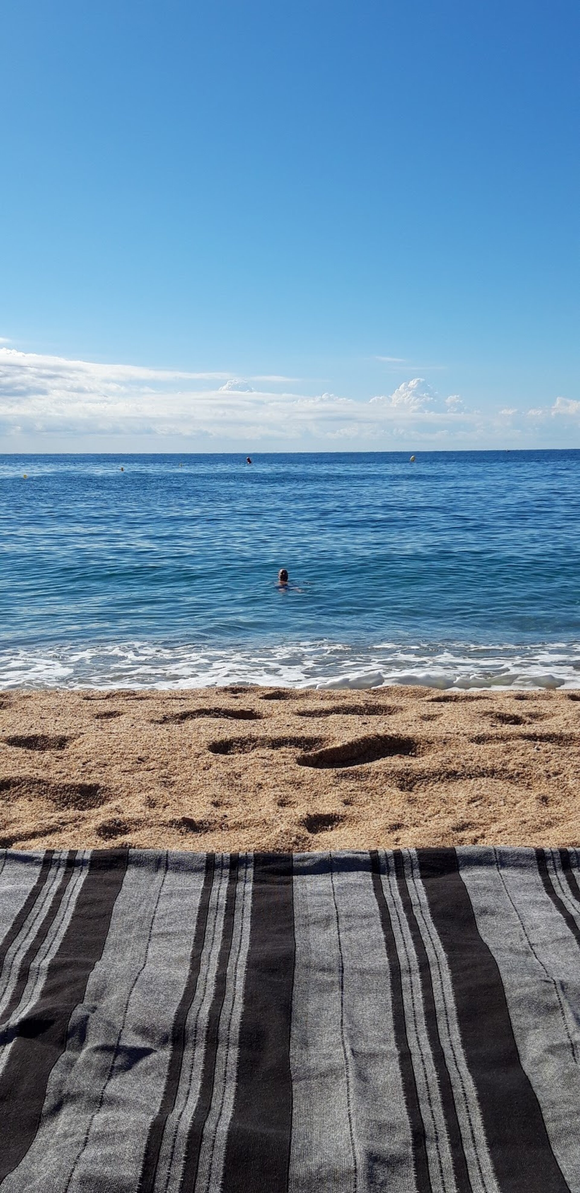 Experiencia fantástica: Prefiero las playas como la de Calella, con arena más gruesa y fácil de quitar y entrada al agua en la que enseguida hay profundidad y no has de andar medio kilómetro para cubrir medio cuerpo. Por otro lado es una playa donde está prohibido fumar, excepto en la zona de tumbonas y sombrillas de alquiler, claro, allí se puede fumar por qué hay una barrera invisible que hace que el humo no salga de esa zona y no te moleste el humo si estás al lado.