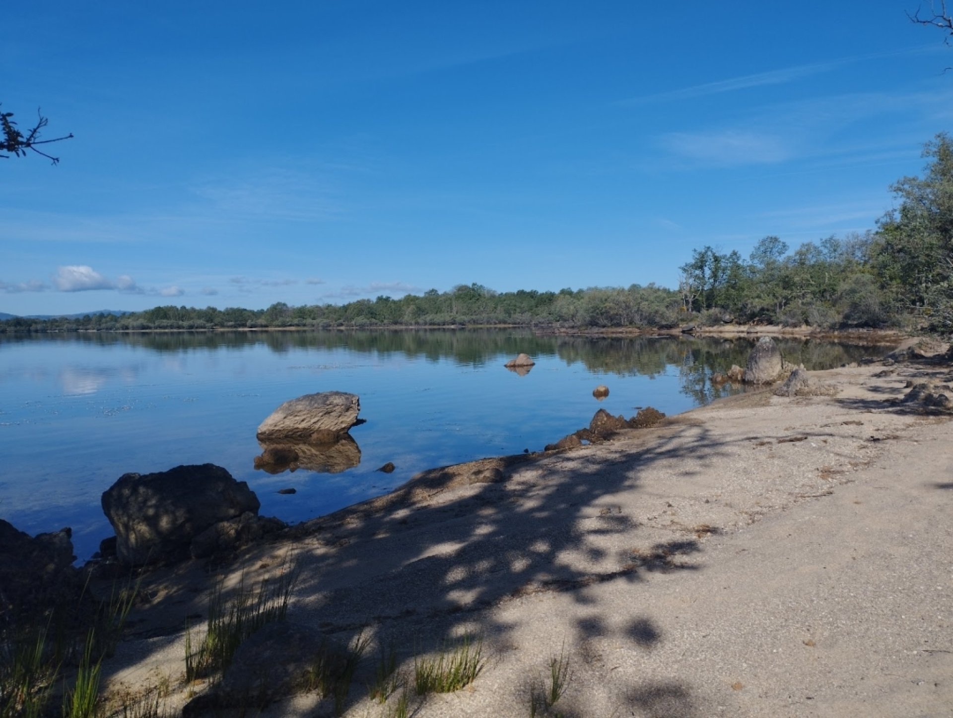 El aparcamiento es conveniente y los alrededores ofrecen oportunidades para pescar. La playa cuenta con zonas de arena y buena sombra de robles, creando un ambiente relajante. Sin embargo, durante los días pico de verano, puede llenarse, especialmente cerca del chiringuito.