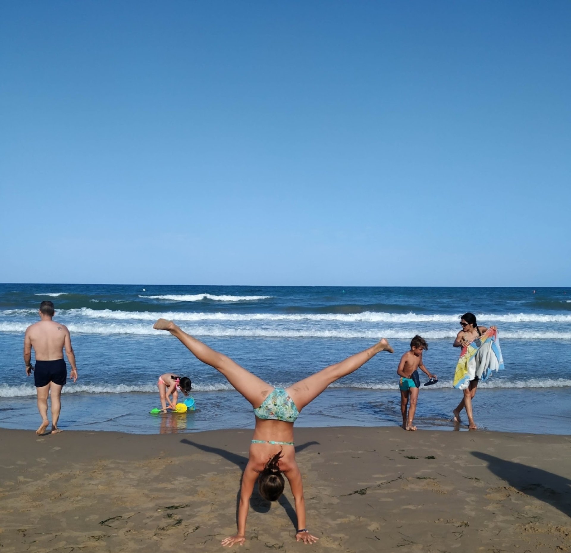 Experiencia positiva: Una playa infinita, con una arena limpia y dorada. Y un hermoso pinar como acompañamiento