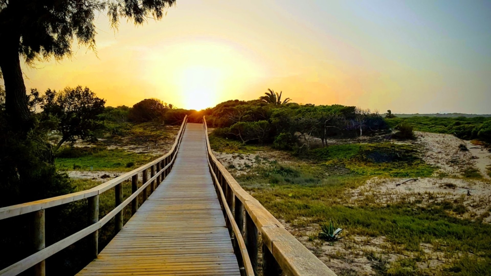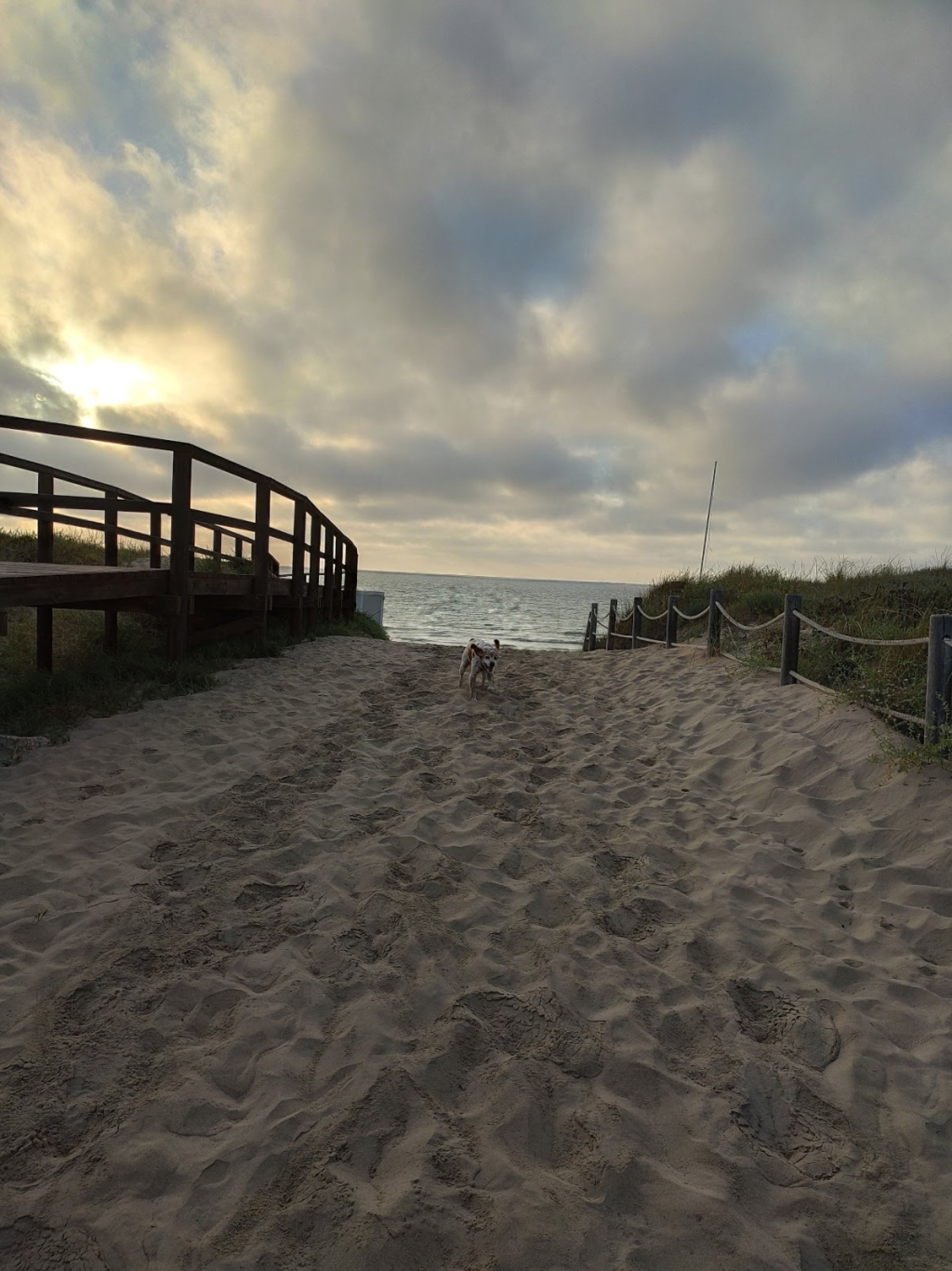 Experiencia positiva: La pasarela de madera ya no existe es una pena porque el camino se hacia por la sombra. La playa es preciosa aunque no está permiso los perros durante el día, en general es una zona muy bonita y tranquila.