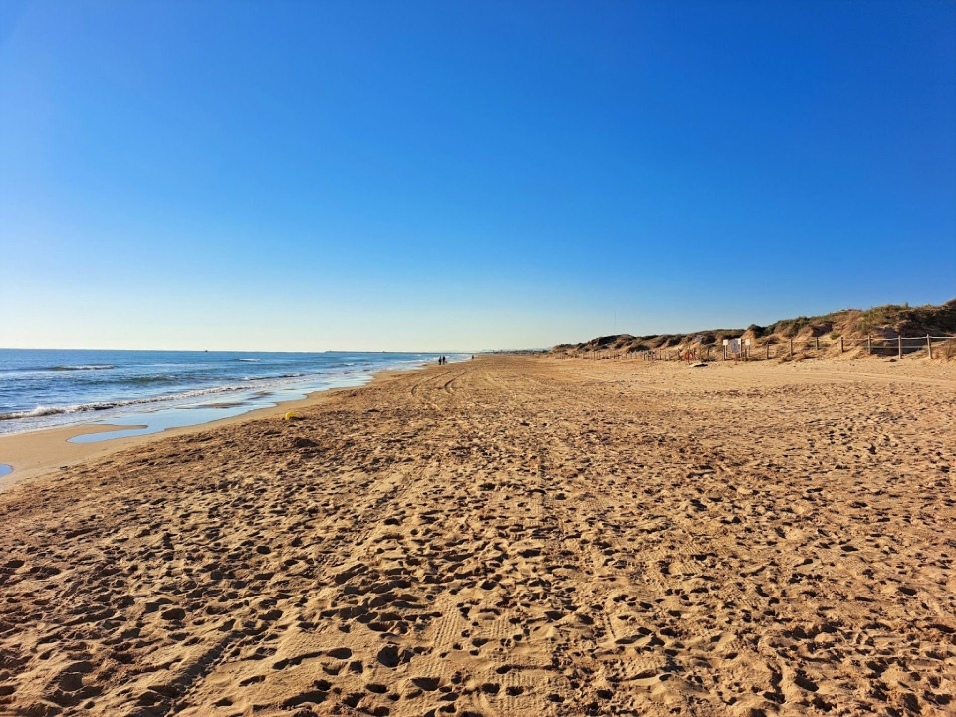 Experiencia fantástica: De las pocas playas que quedan 'casi' salvajes en la zona. Para llegar hay que aparcar a unos 600 m. e ir andando por un camino entre pinos, atravesando las dunas. La playa es bonita, con poca gente y vigilancia. Al ser una zona con viento es fácil observar a muchas personas haciendo kitesurf, lo que te permite disfrutar de un bonito espectáculo de colores en el aire. La playa es muy abierta y sin piedras, con arena blanca y mar turquesa.