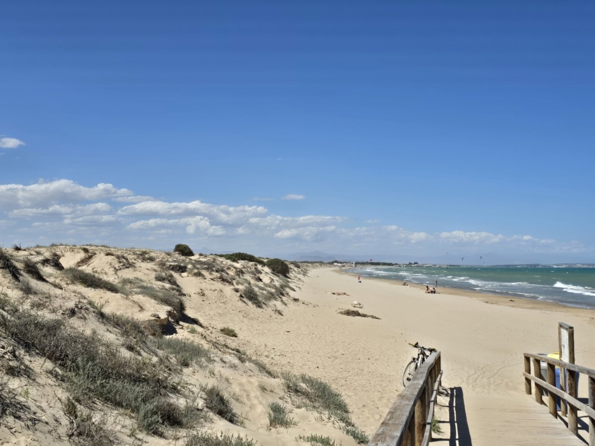 Experiencia fantástica: Muy amplia y chula, se ve desde Santa Pola, Tabarca hasta Guardamar. Cuidadito con las corrientes que son peligrosas eh. Nos llevan en trenecito desde el camping, así que mola. El tren lo puedes coger aunque no seas del camping pagando ticket y te ahorras 1km de pateo.