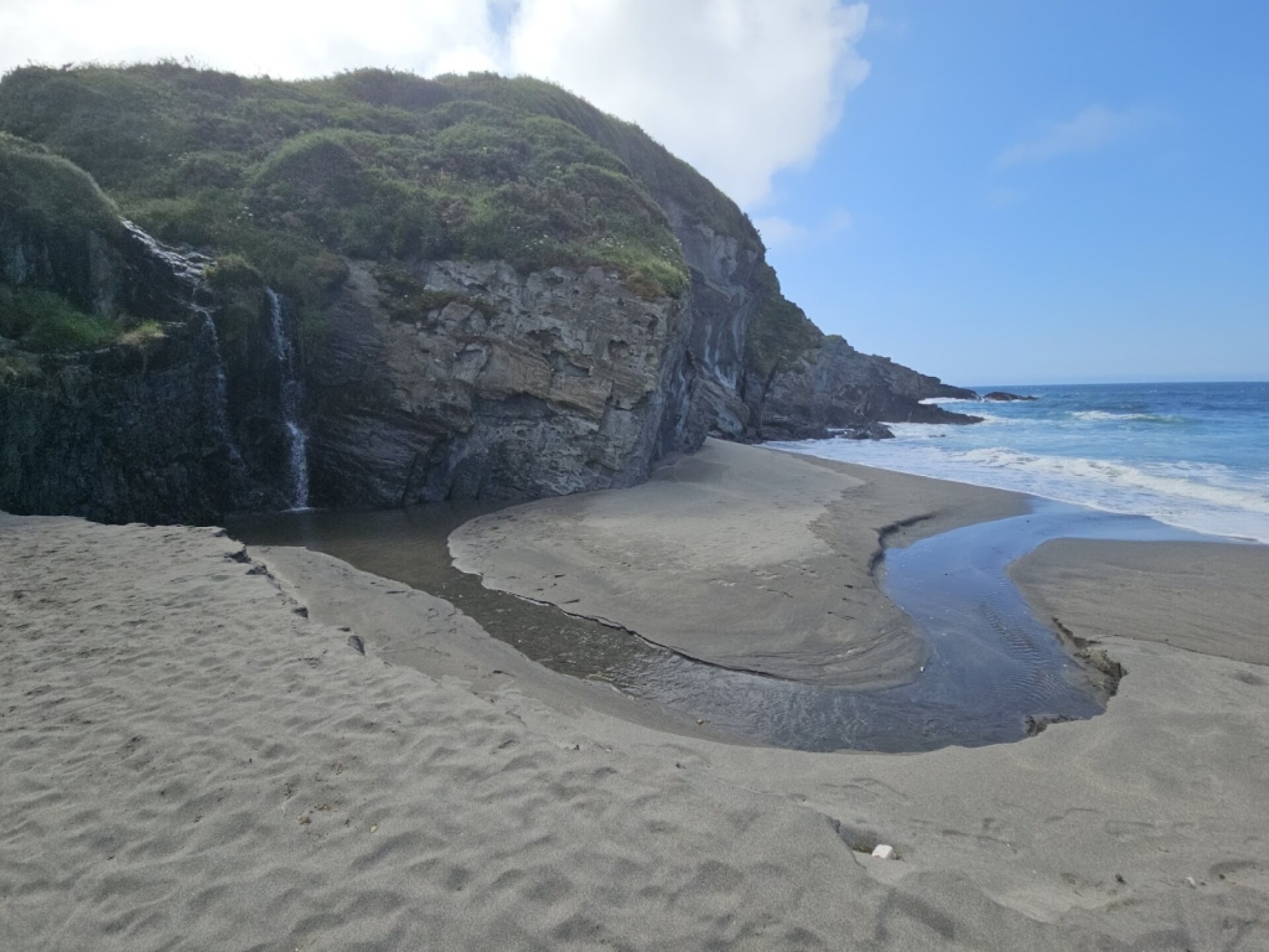 Experiencia positiva: Bella playa con arena gris. No se permiten autocaravanas en su parking (y vimos unas cuantas), ni perros en la playa. Tiene rutas de senderismo.