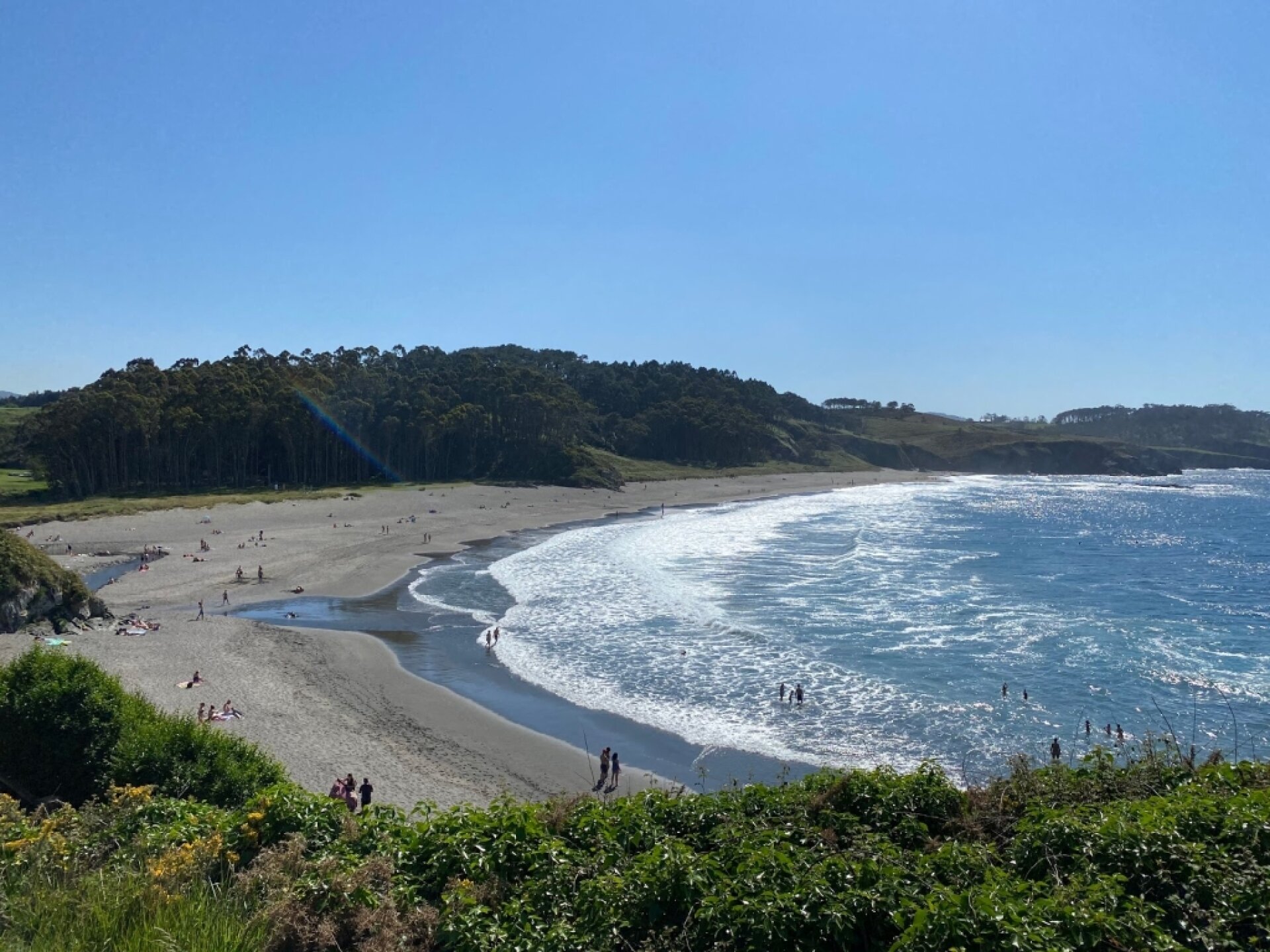 Experiencia fantástica: Es una maravilla de playa. Tienes parking gratuito. Un rio q desemboca en el mar donde los niños han gozado. Olas muy buenas para el surf, rodeado de arboles altisimos y helechos tipicos de Asturias, un entorno privilegiado. Chiringuito elevado con vistas maravillosas