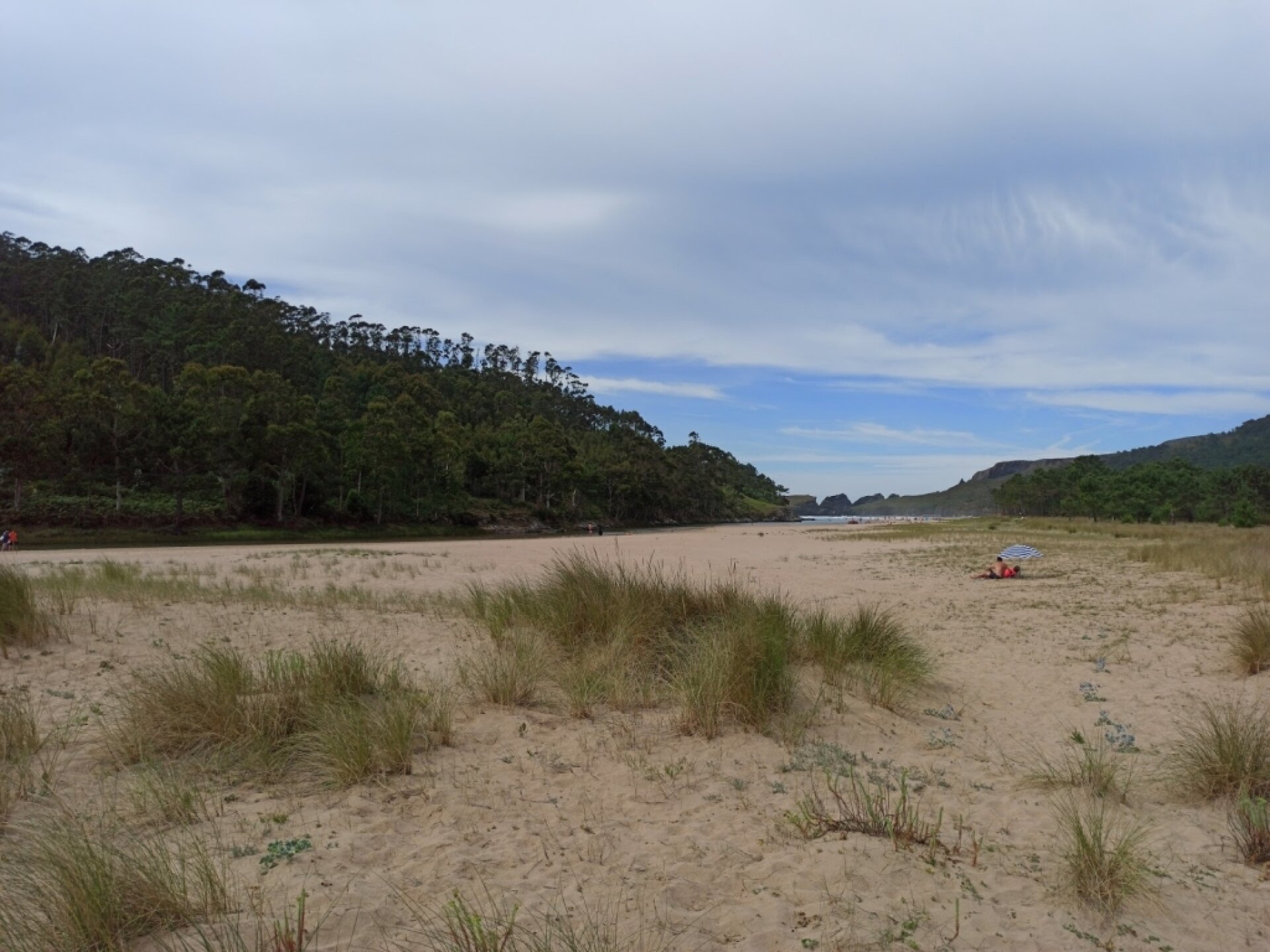 Experiencia fantástica: Playa preciosa. Recomendable 100%. Pero Ojo: muy peligrosa. NO OS CONFIEIS. Aún con poco oleaje tiene muchísimas corrientes que te sacan fuera y sin neopreno o tabla imposible salir. Todos los años se ahoga alguien o tiene que venir la ambulancia por gente que casi se ahoga. No es mito. Llevo 40 años yendo allí de vacaciones. Tenerlo en cuenta porque hubo socorristas pero ya no hay dinero y ya ni bandera que avise del peligro. El río de la izquierda seguro y meterse en el mar sin llegar a más de la cintura y ojito si hay oleaje fuerte. No os confíes porfa que no merece la pena amargarse las vacaciones así. Tenéis alrededor muchísimas playas seguras de baño. Ésta, dejarla para las fotos.