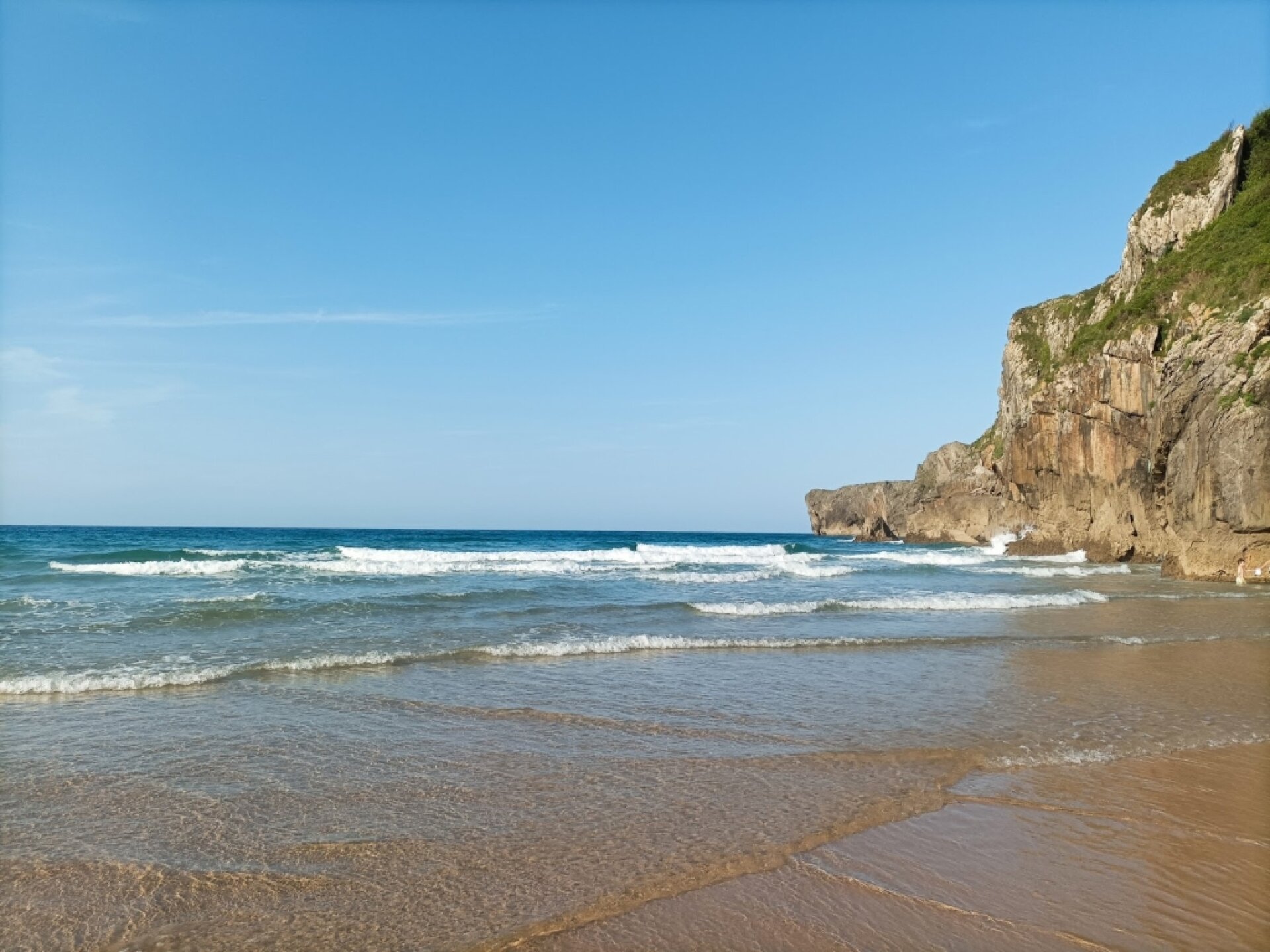 Experiencia fantástica: El agua es fría porque ya conocemos al Cantábrico pero con calor de verano es muy refrescante. La arena es preciosa y la marea baja durante el día por lo qué hay mucho espacio para tomar el sol y disfrutar de la playa. Por los laterales tiene paredes rocosas tipo caverna que le dan el toque al lugar. Tiene chiringuito con vistas privilegiadas, opciones para comer y baño. El acceso es fácil y cuenta con parking gratuito. De mis playas favoritas de todo España!